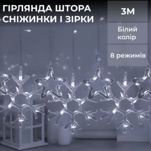 Гірлянда штора 3х0,9 м сніжинка зірка на 145 LED лампочок світлодіодна 10 шт біла (1733067W)