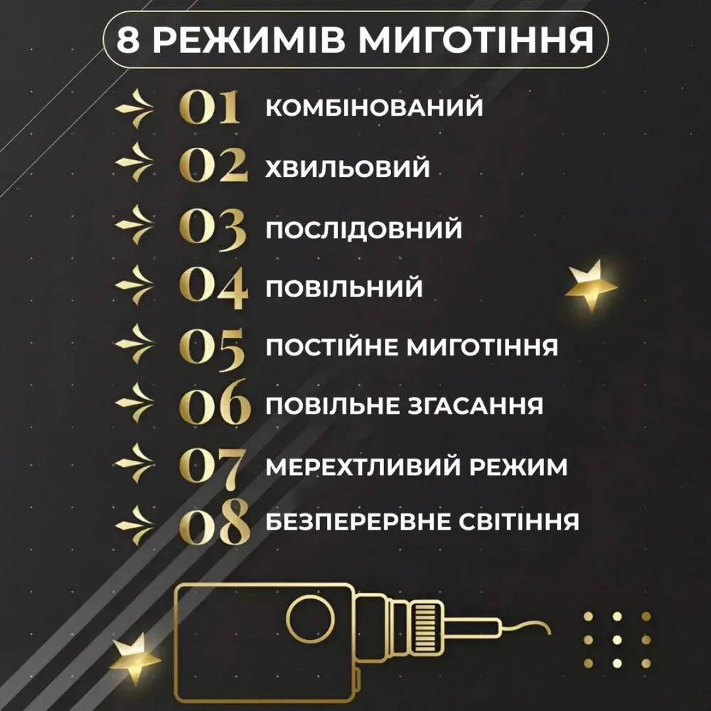 - Довговічність та енергоефективність: Використовуючи сучасні LED технології, гірлянда ефективно витрачає енергію, забезпечуючи яскраве світло і довгий термін служби. Ви можете насолоджуватися світлом цієї гірлянди протягом багатьох святкових сезонів.