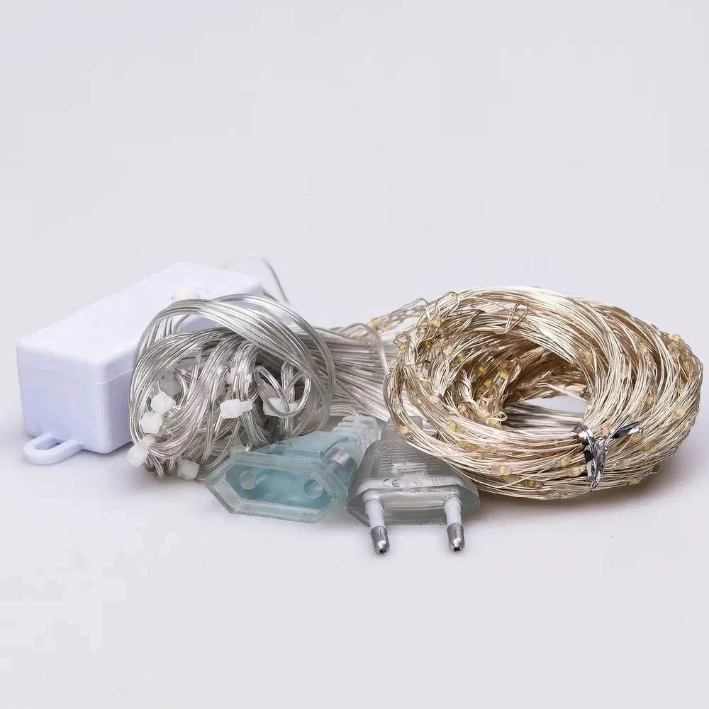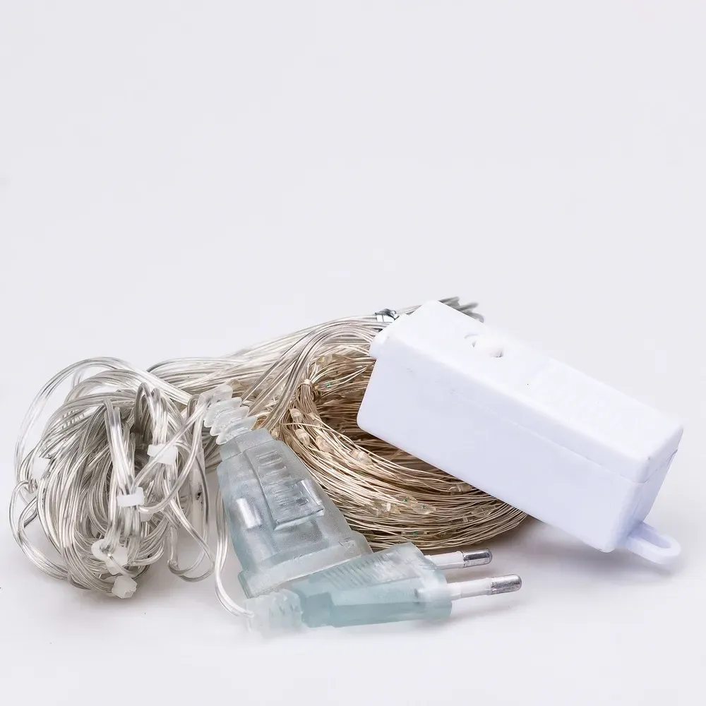 Гірлянда світлодіодна штора Роса: 200 LED лампочок, мідний провід, 3х2 м, 10 ліній, 8 режимів