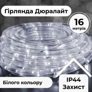 Світлодіодна гірлянда Дюралайт відрізняється морозостійкістю, захищена від перепадів температур та підвищеної вологості, має просту та надійну конструкцію, завдяки чому ідеально підійде для створення святкової ілюмінації, підсвічування дерев та навіть прикраси дахів. Пристрій є загерметизований ПВХ-провід з послідовно розташованими світлодіодами. На кінцях передбачені штекерні роз'єми із закруткою, що дозволяють з'єднувати кілька гірлянд. Завдяки такій конструкції та чудовій герметичності, її можна використовувати в оформленні об'єктів різного розміру та площі.