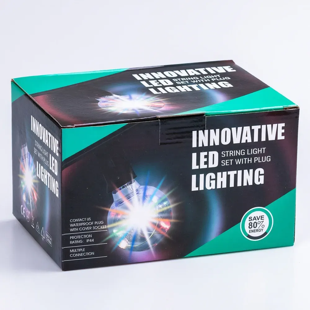 Стійкість до погодних умов: Ця гірлянда має ступінь захисту IP44 і працює в діапазоні температур від -20°C до +60°C, що робить її стійкою до атмосферних впливів та дозволяє використовувати її на вулиці.