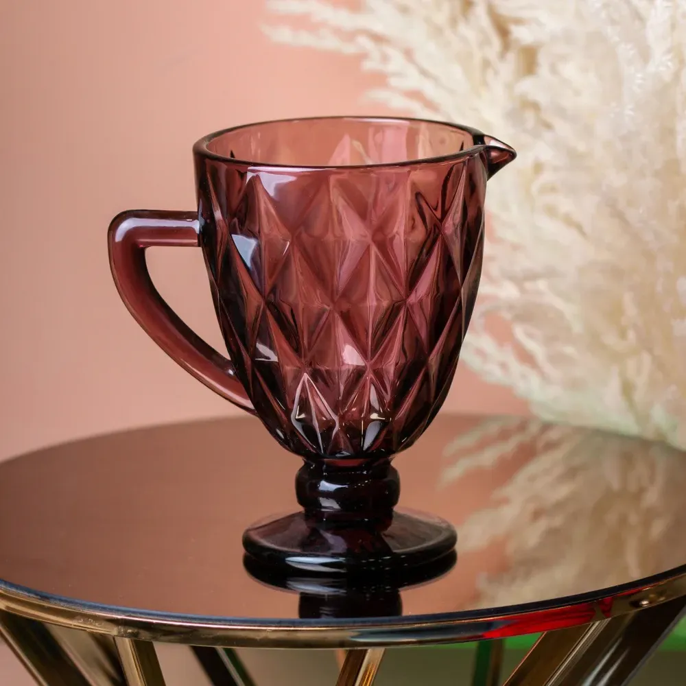 Глек для напоїв 1.3 л фігурний гранований з товстого скла Рожевий (HP038P)