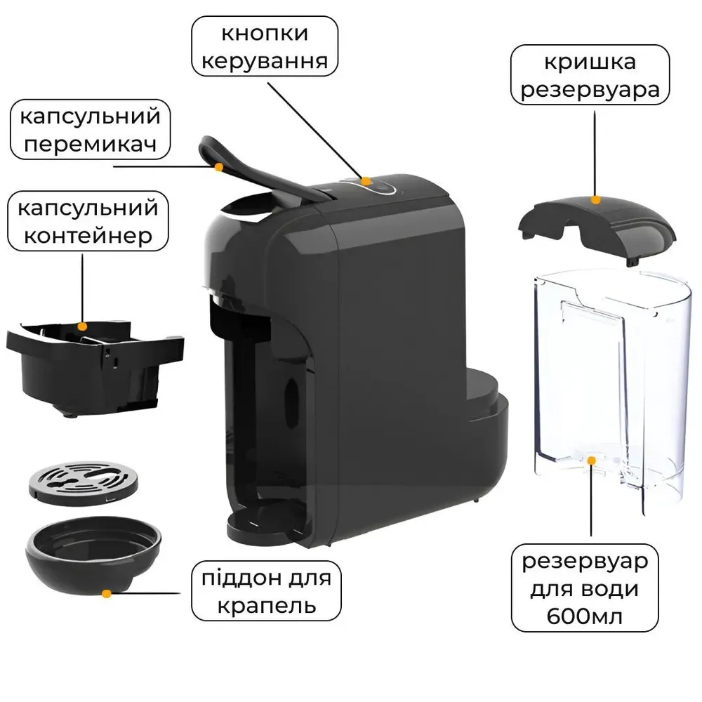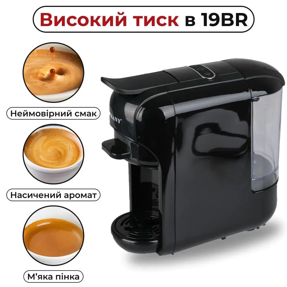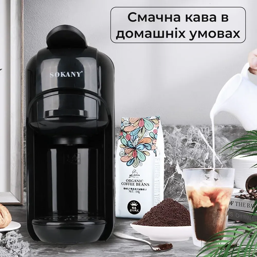 Кавоварка електрична для дому 3 в 1 перехідники на 2 види капсул 1450 Вт 600 мл Sokany SK-516 (SK516B)
