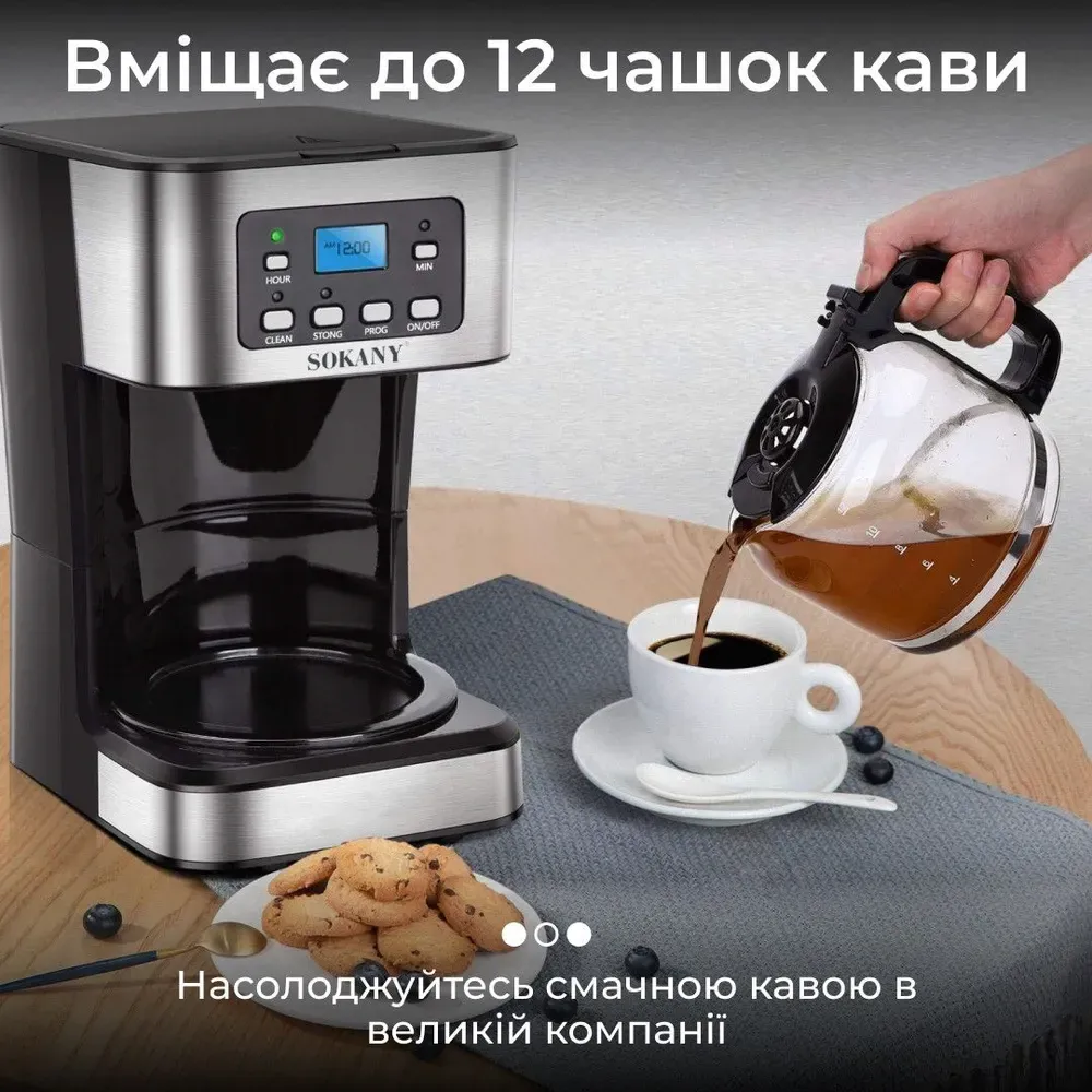 Кавоварка крапельна електрична з автопідігрівом 950 Вт 1.5 л 12 чашок Sokany CM-121E (CM121E)