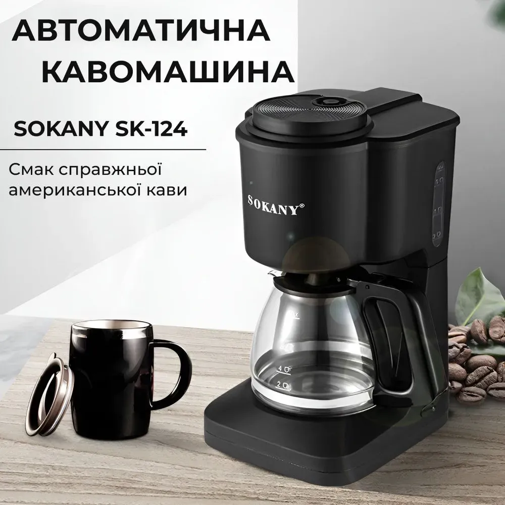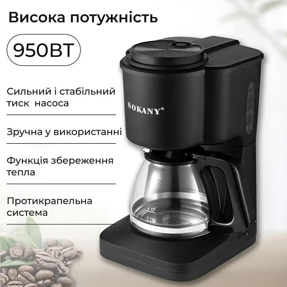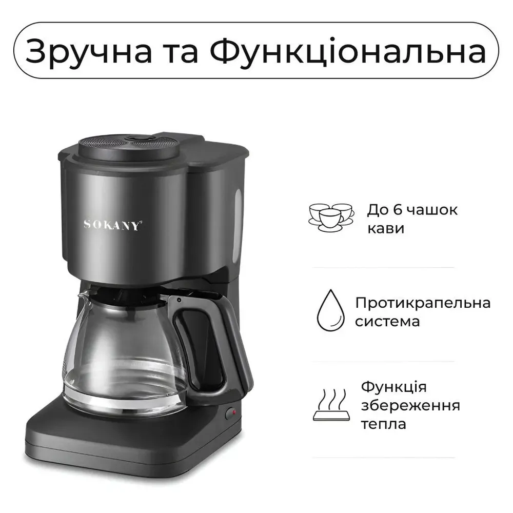 Кавоварка крапельна електрична з автопідігрівом 950 Вт 600 мл Sokany SK-124 (SK124B)