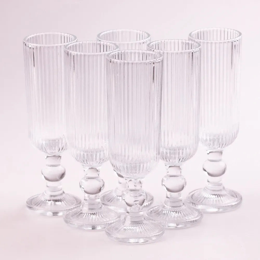 Келих для шампанського фігурний прозорий ребристий з товстого скла набір 6 шт (HP7116)