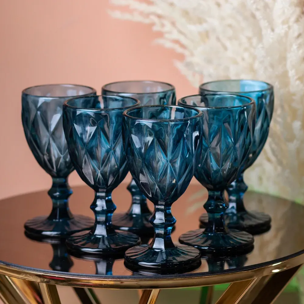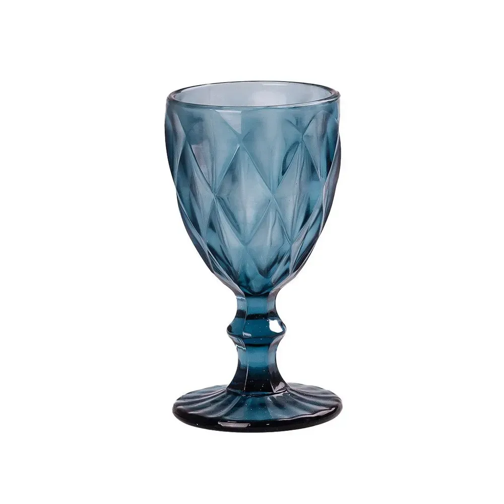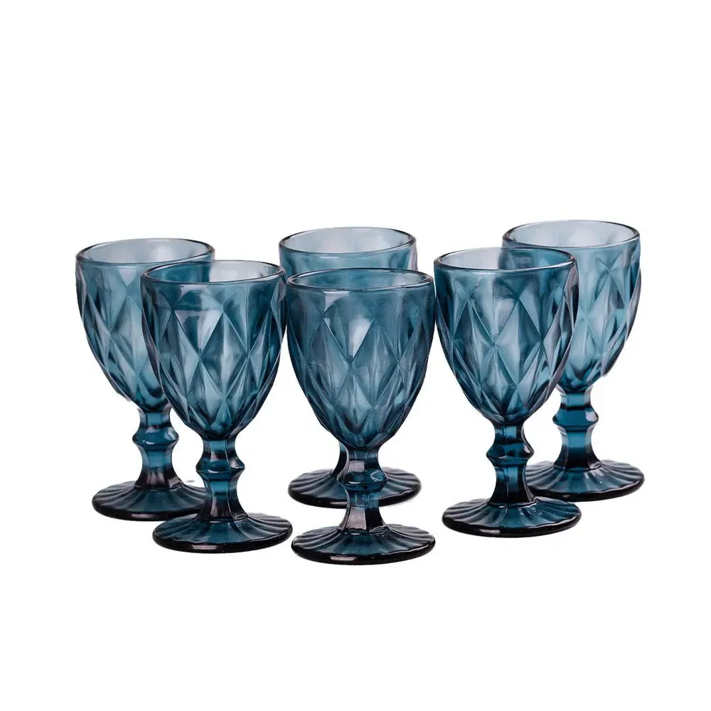 Келих для вина фігурний гранований з товстого скла набір 6 шт Синій (HP034BL)
