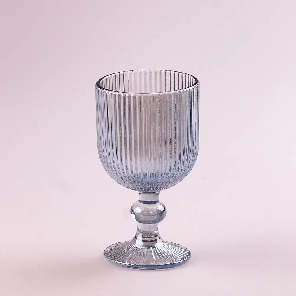 Келих для вина фігурний прозорий ребристий з товстого скла набір 6 шт Блакитний (HP7114BL)