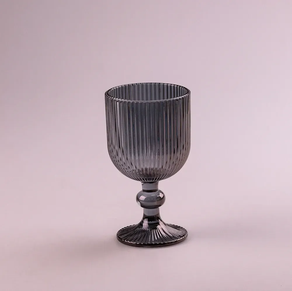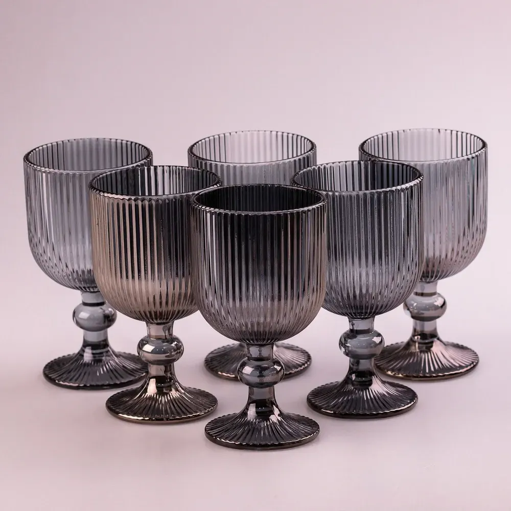 Келих для вина фігурний прозорий ребристий з товстого скла набір 6 шт Сірий (HP7114G)