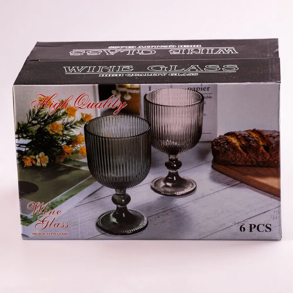 Келих для вина високий фігурний прозорий ребристий з товстого скла набір 6 шт (HP7115)
