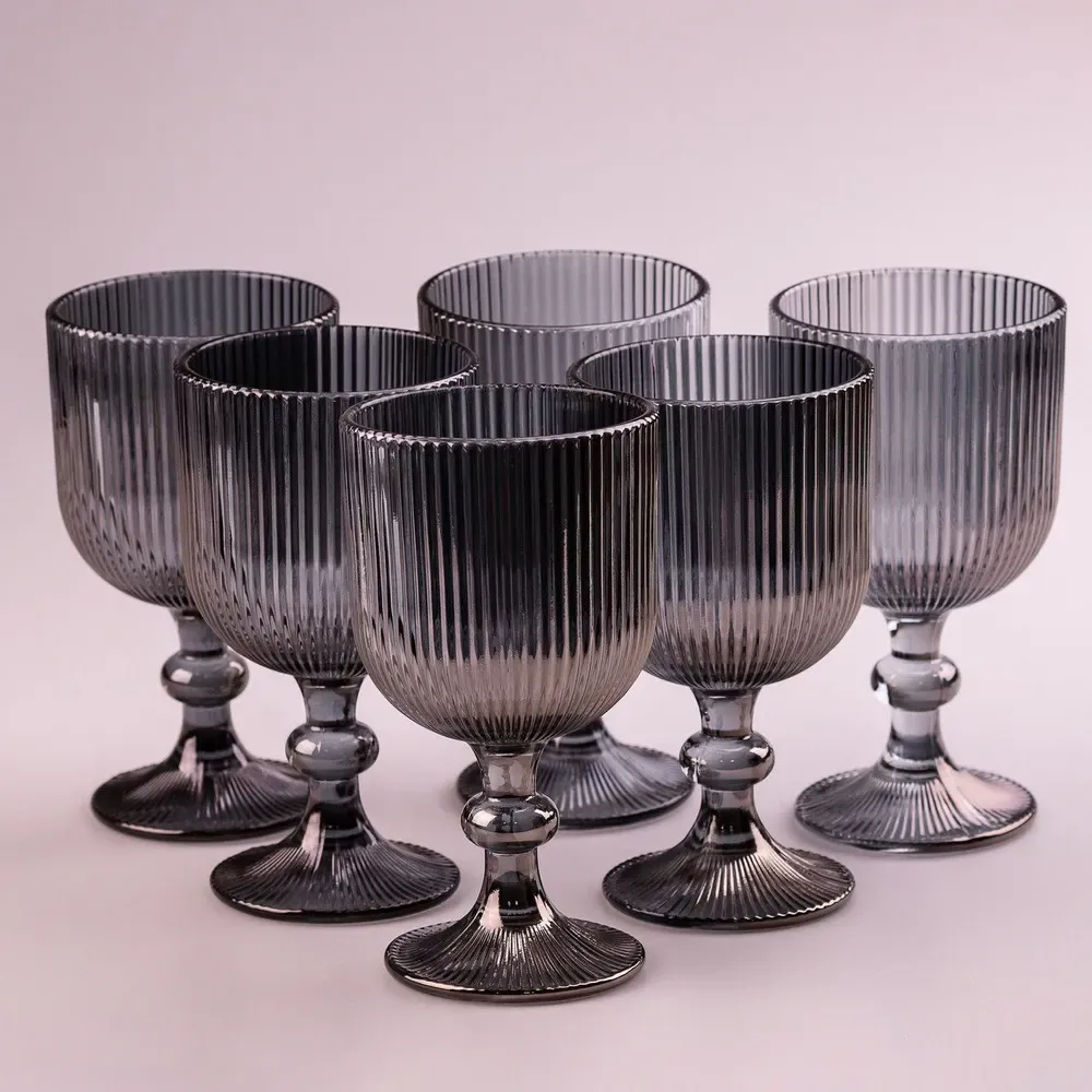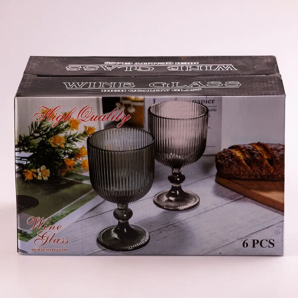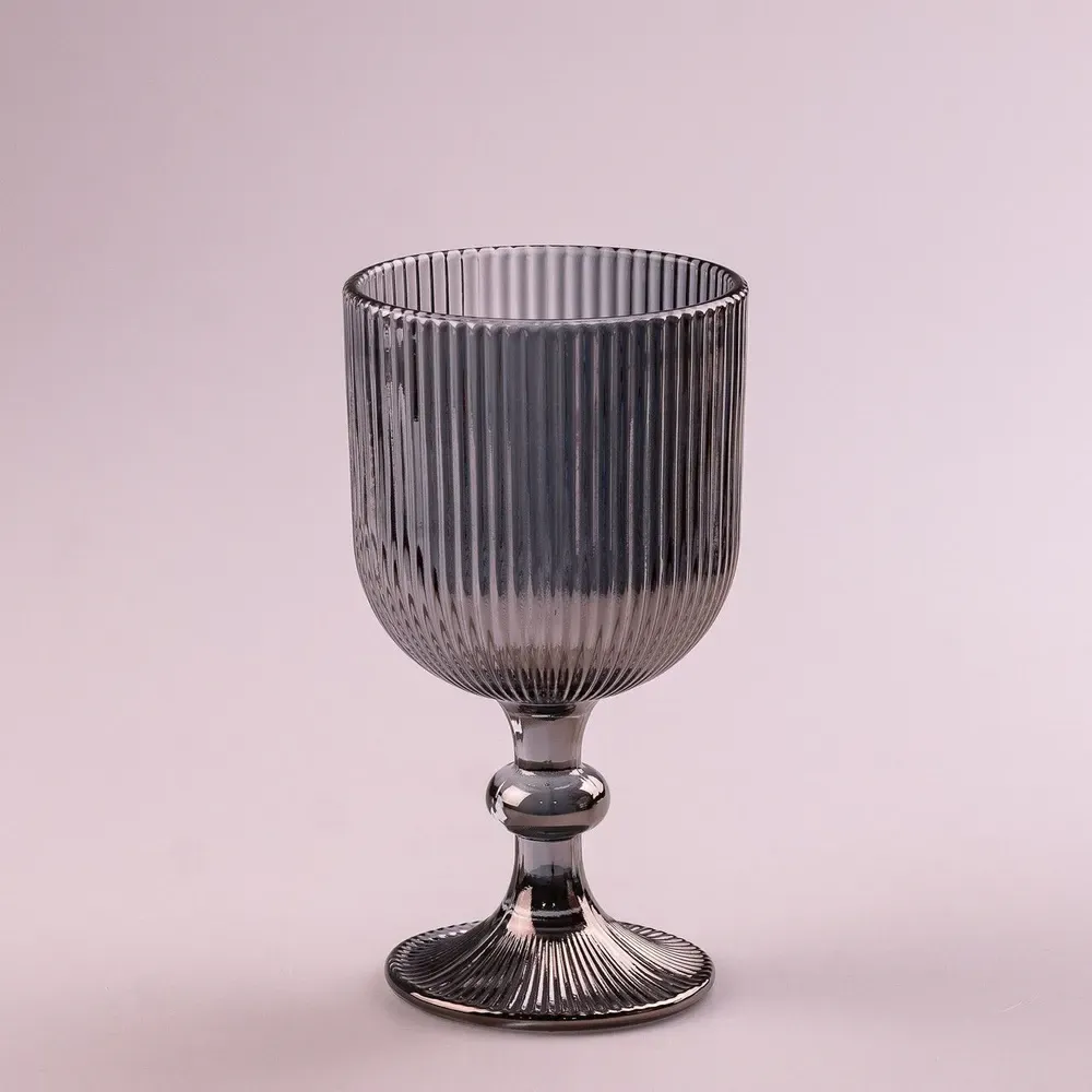 Келих для вина високий фігурний прозорий ребристий з товстого скла набір 6 шт Сірий (HP7115G)