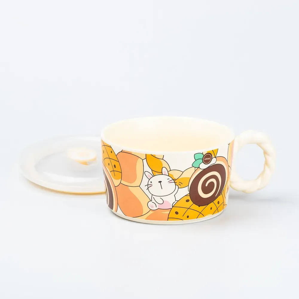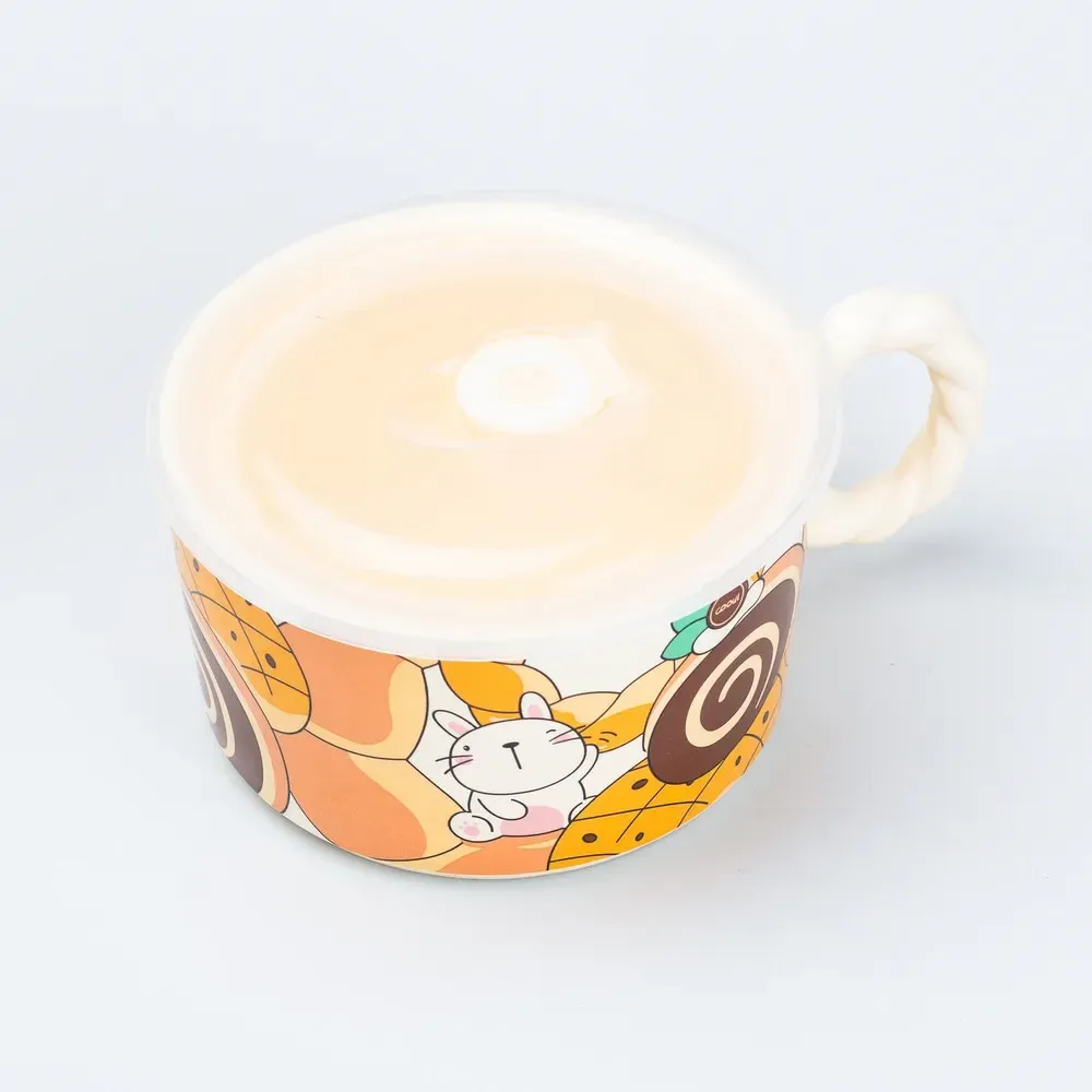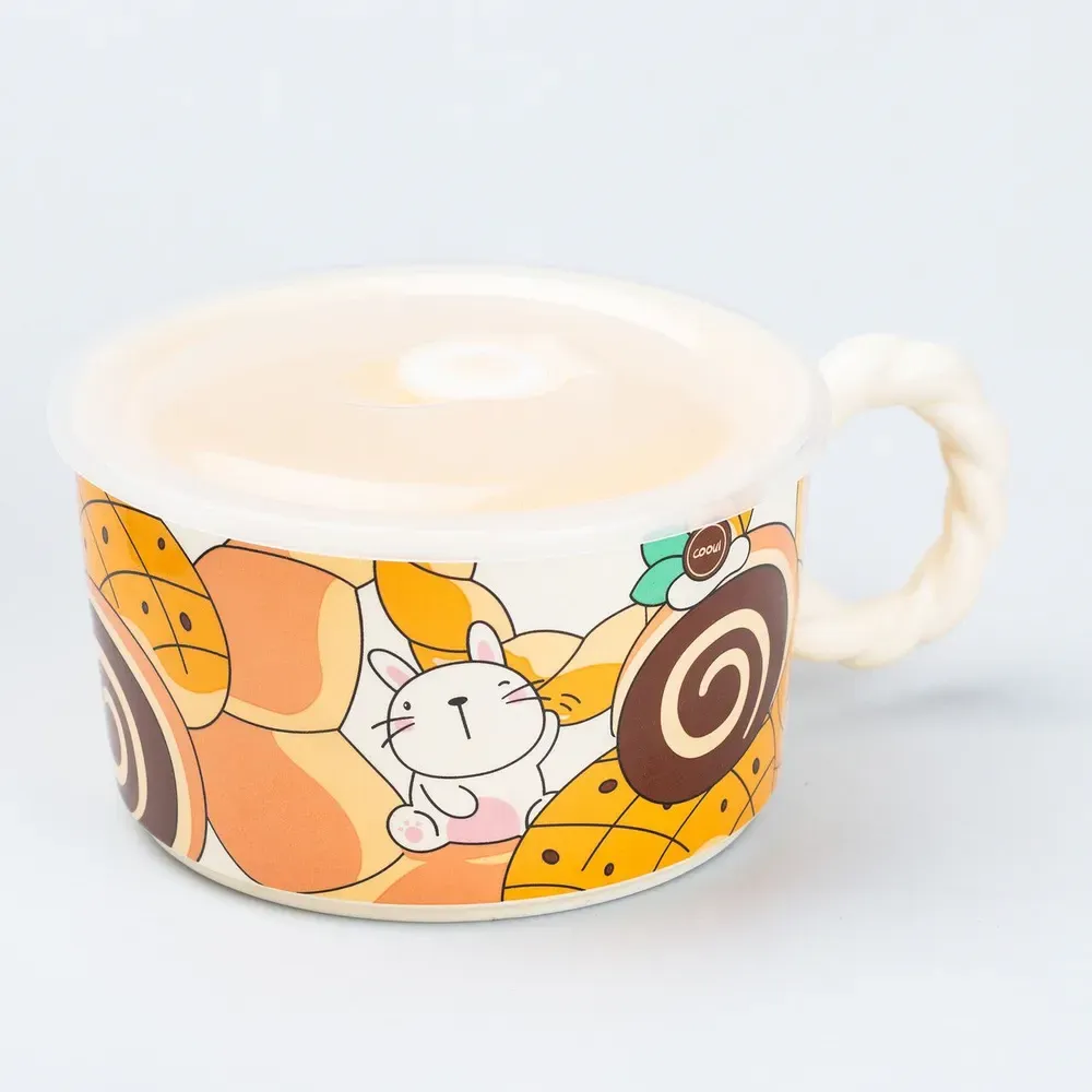 Керамічна бульйонниця 800 мл з пластиковою кришкою "Кролик" супниця миска для локшини (HP7215rabbit)