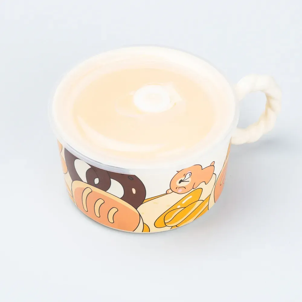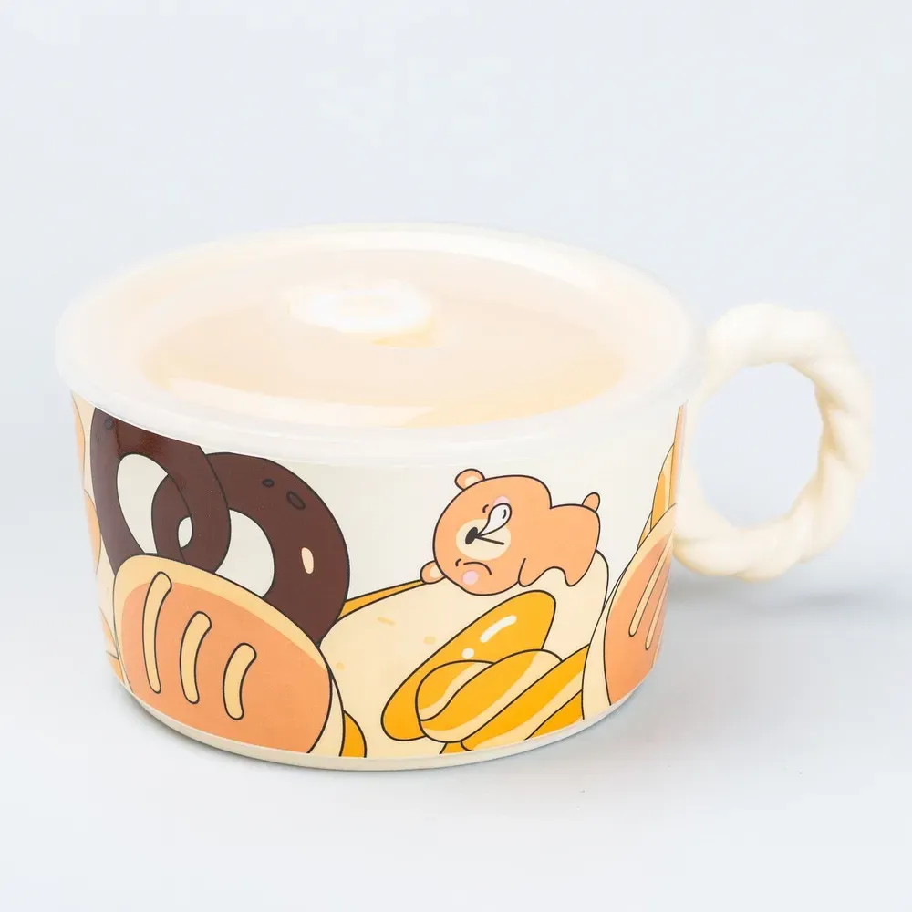 Керамічна бульйонниця 800 мл з пластиковою кришкою "Ведмедик" супниця миска для локшини (HP7215bear)