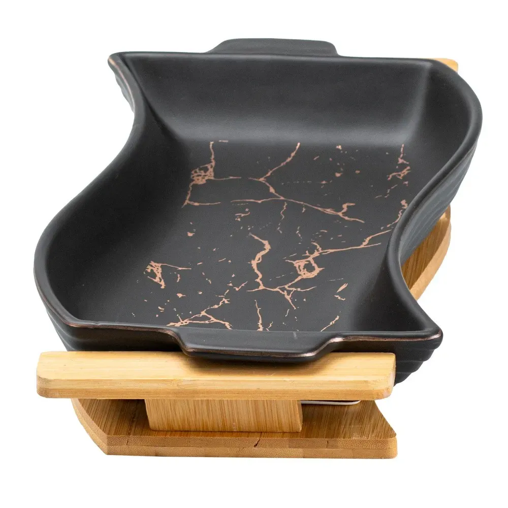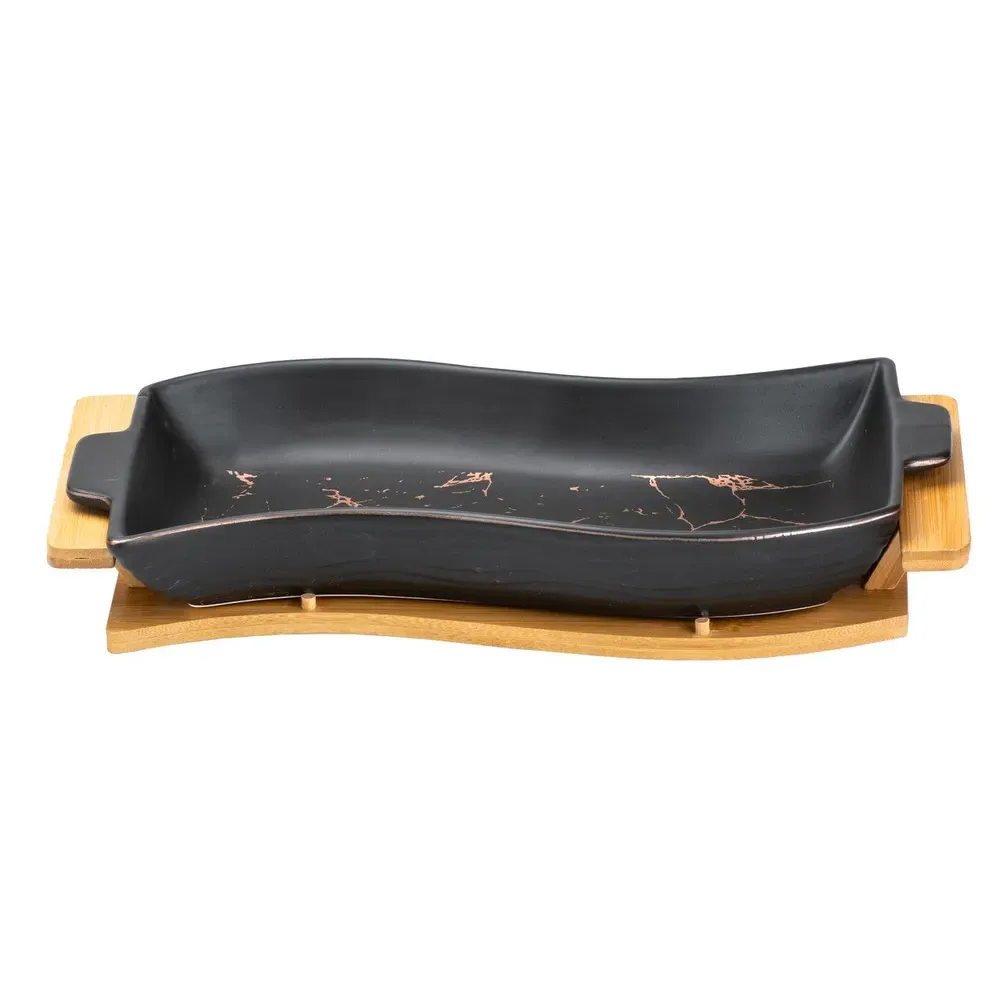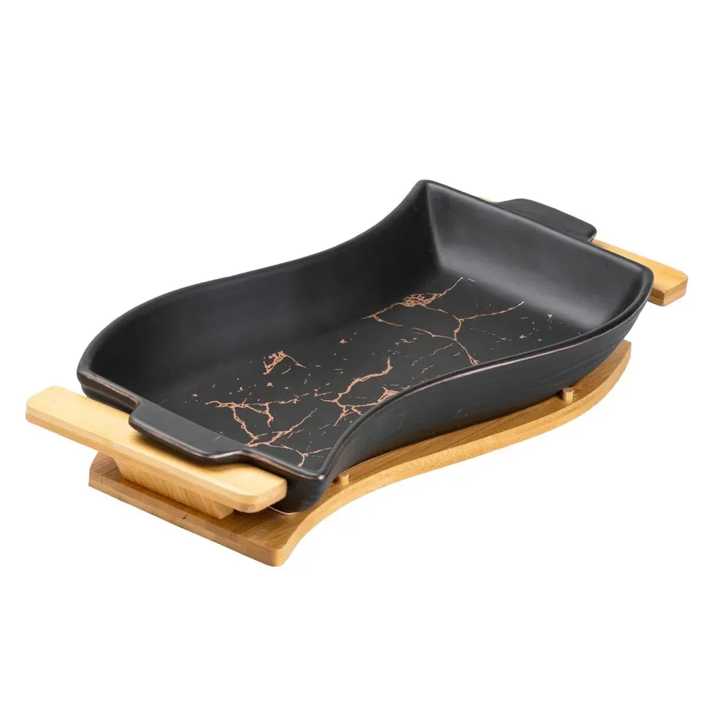 Керамічна страва на дерев'яній підставці для сервірування столу 39.5 х 20 х 6.5 см (HP20350B)