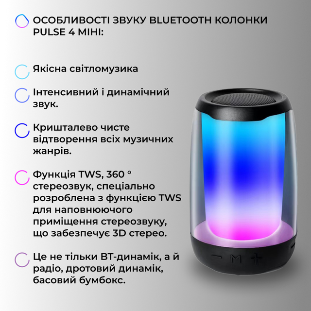 Приголомшлива потужність і якість звуку бездротової колонки Pulse 4 міні