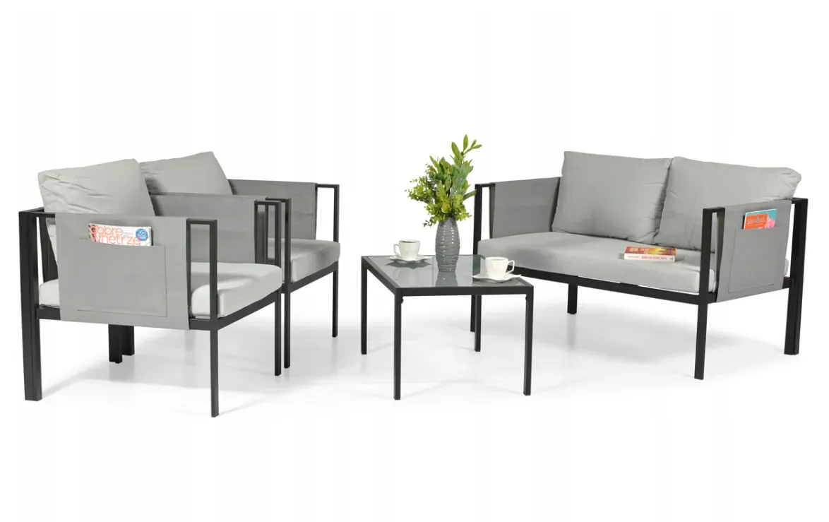 Комплект меблів для відпочинку IBIZA — чудовий вибір для тераси або патіо. Це елегантні та сучасні меблі, які стануть прикрасою будь-якого саду. Завдяки міцному виконанню та високій якості матеріалів вони відмінно підходять для зовнішнього використання — як садові, терасні або балконні меблі.