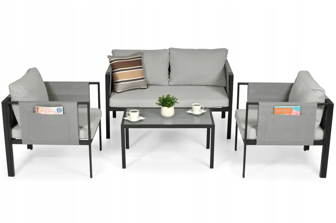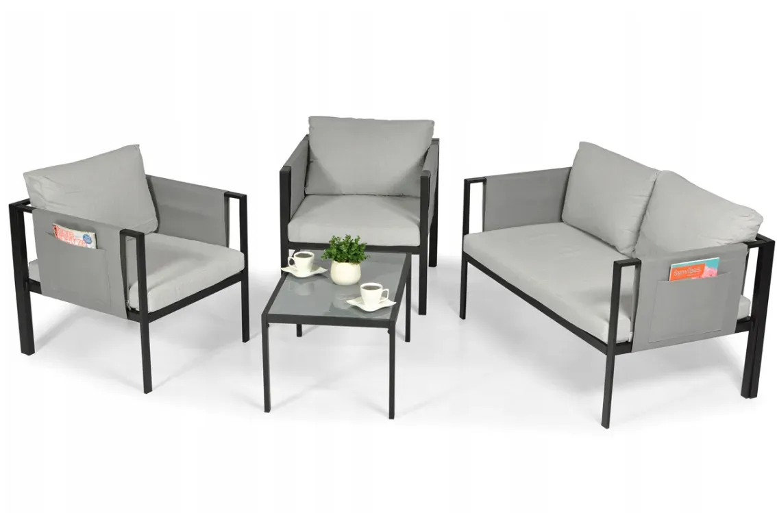 Комплект садових меблів IBIZA eDomator на 4 особи, металевий, з сірими подушками (Польща)