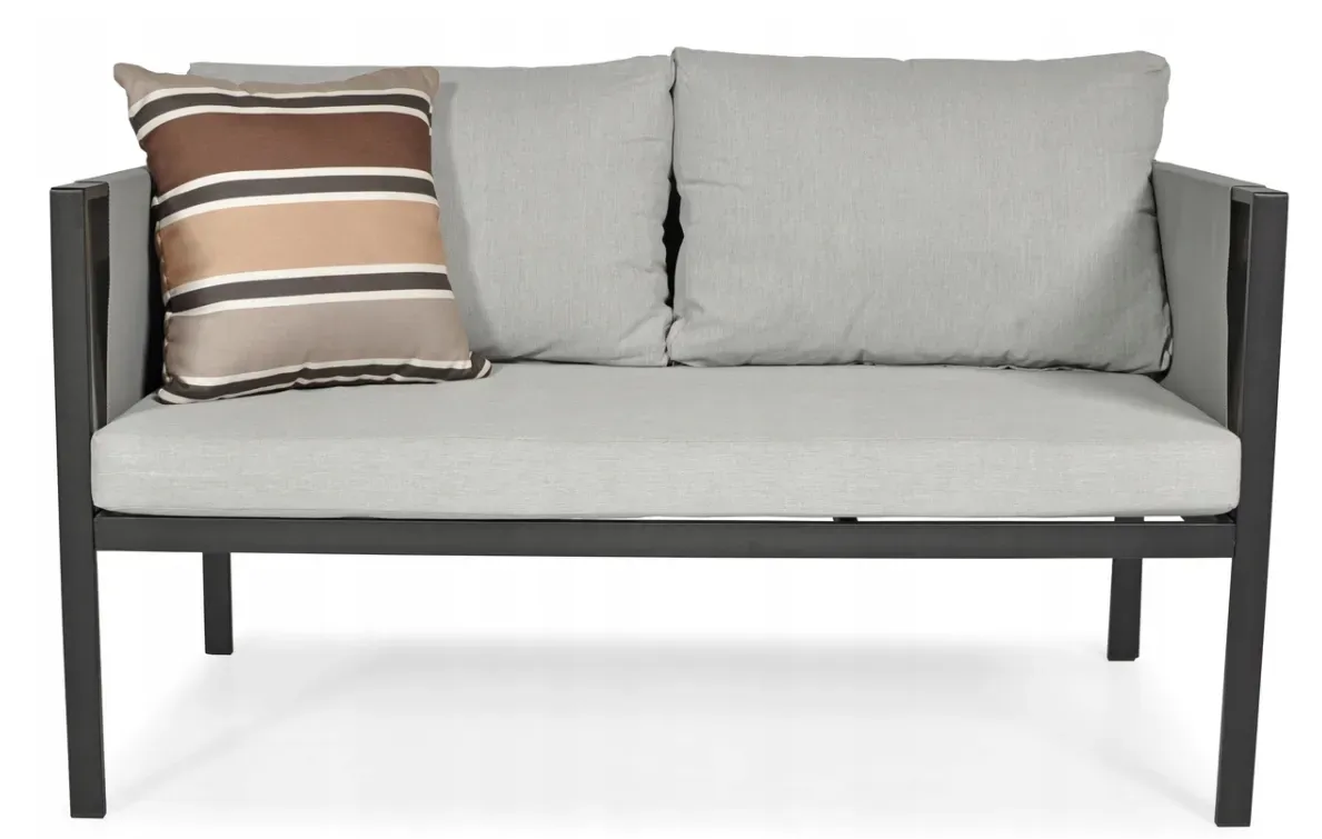- У комплекті: двомісний диван, 2 садові крісла, кавовий столик, подушки для сидіння (3 шт.), подушки для спинок (4 шт.)