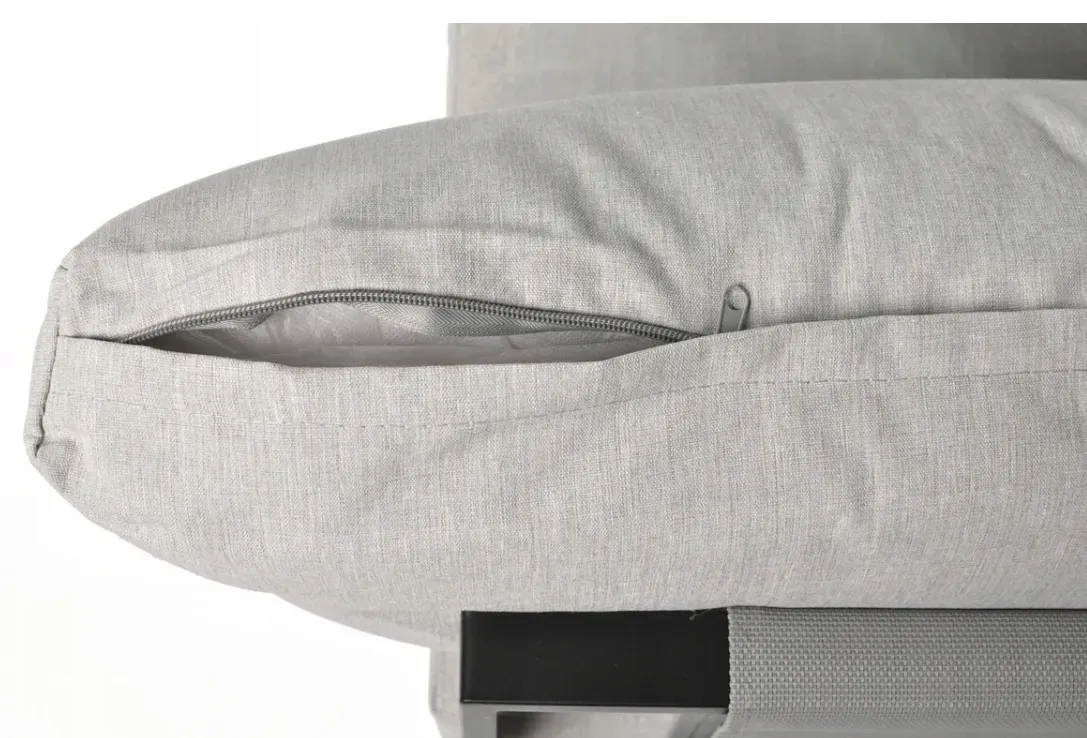 - Подушки мають знімні чохли на блискавці, виготовлені з високоякісного поліестеру. Товщина подушок: 7 см (сидіння) та близько 19 см (спинка).