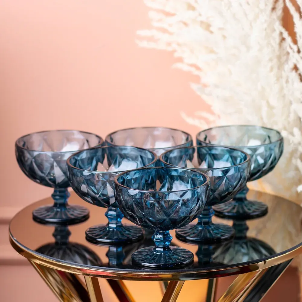 Креманка для морозива фігурна гранована з товстого скла набір 6 шт (HP037BL)