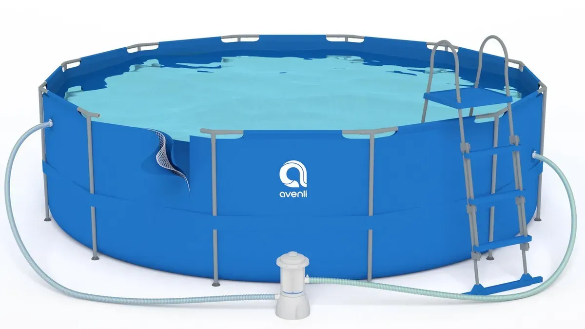 Круглий каркасний басейн Avenli (450 x 122 см) для дорослих і дітей, комплектація 18в1, Синій (В0024)