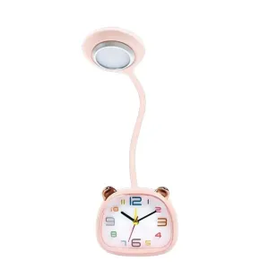 Лампа настільна акумуляторна дитяча з годинником та USB настільний світильник з будильником 1.3 Вт CD-917 Рожевий (CD917P)
