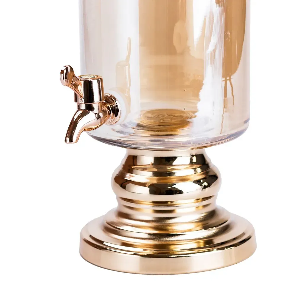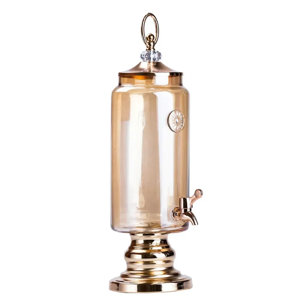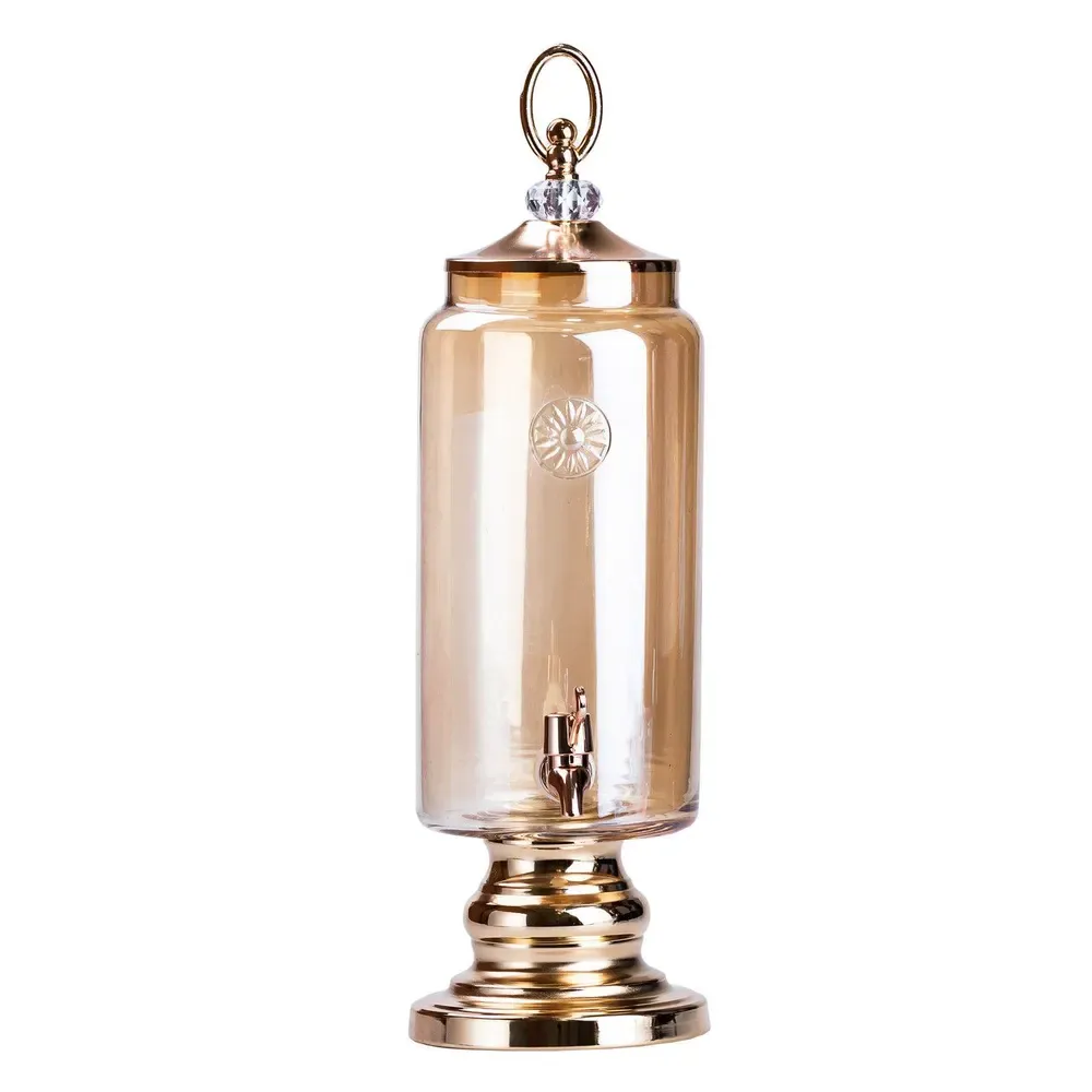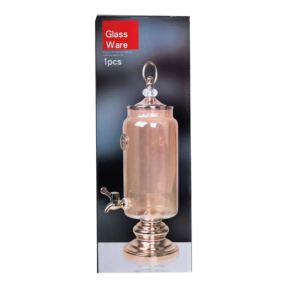 Лимонадниця з краном - це елегантний і практичний аксесуар для будь-якого святкового столу. Виготовлена з високоякісного товстого скла, вона вражає міцністю і стійкістю до механічних пошкоджень. Металева підставка з краном робить подачу напоїв легкою та зручною, дозволяючи гостям наливати себе свіжі і освіжаючі напої без зайвого розливання. Герметична кришка забезпечує збереження свіжості напоїв, що дозволяє насолоджуватися ними протягом тривалого часу. Лимонадниця підходить для подачі різноманітних напоїв, таких як лимонади, соки, компоти, морси та інші, що робить її універсальним вибором для будь-якої вечірки.