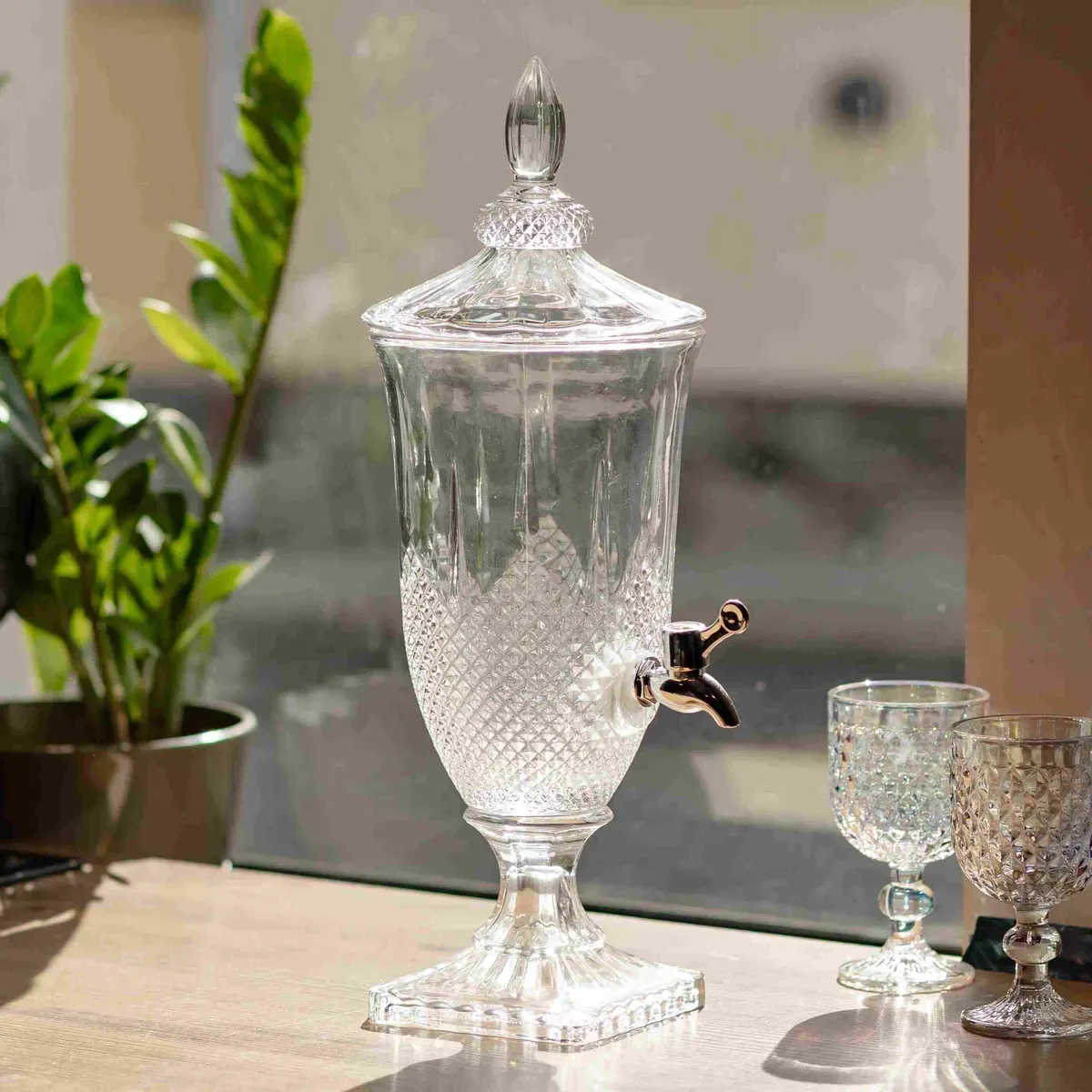 Елегантна лимонадниця з прозорого скла об'ємом 2 літри – ідеальне рішення для подачі напоїв на сімейних святах, фуршетах та пікніках. Особливості: Об'єм: 2 літри - оптимальний для невеликої компанії. Матеріал: скло із декоративною фактурою. Стійка основа та елегантний дизайн – гарно виглядає на столі. Підходить для лимонадів, морсів, компотів, холодного чаю та інших прохолодних напоїв. Рекомендується акуратно мити вручну, щоб зберегти блиск та візерунок скла. Для того щоб користуватися диспенсером довгі роки, слід дотримуватися кількох простих правил: Не використовуйте лимонадницю з гарячими напоями (50°С). Не допускайте різниці температур ємності та напою понад 25°С. Не кладіть лід у порожній диспенсер, охолоджуйте лише сам напій. Характеристики: Матеріал: скло Об'єм: 2 л Діаметр: 17 см Висота: 48 см Матеріал краника: пластик Вага: 2,9 кг