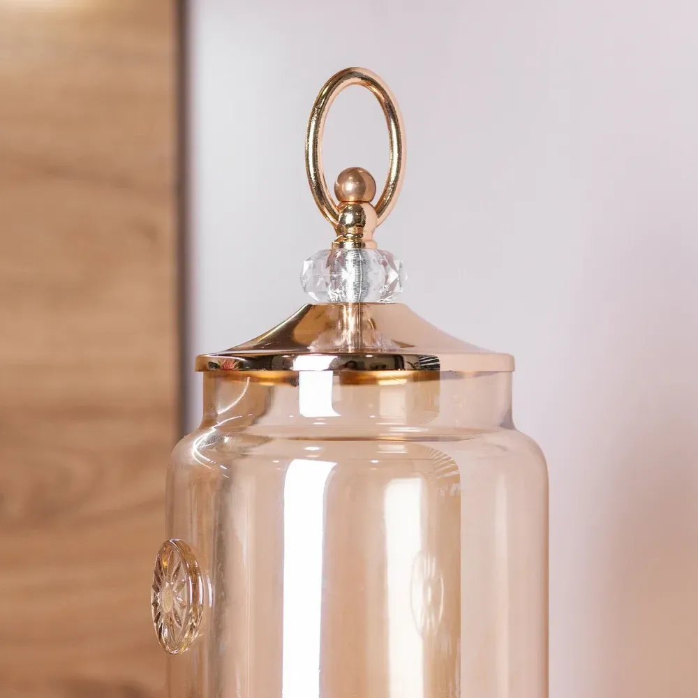 Виготовлена зі скла, вона забезпечує огляд вмісту і створює елегантний візуальний акцент. Металева підставка надає не тільки стійкість, а й додаткову декоративну вишуканість.