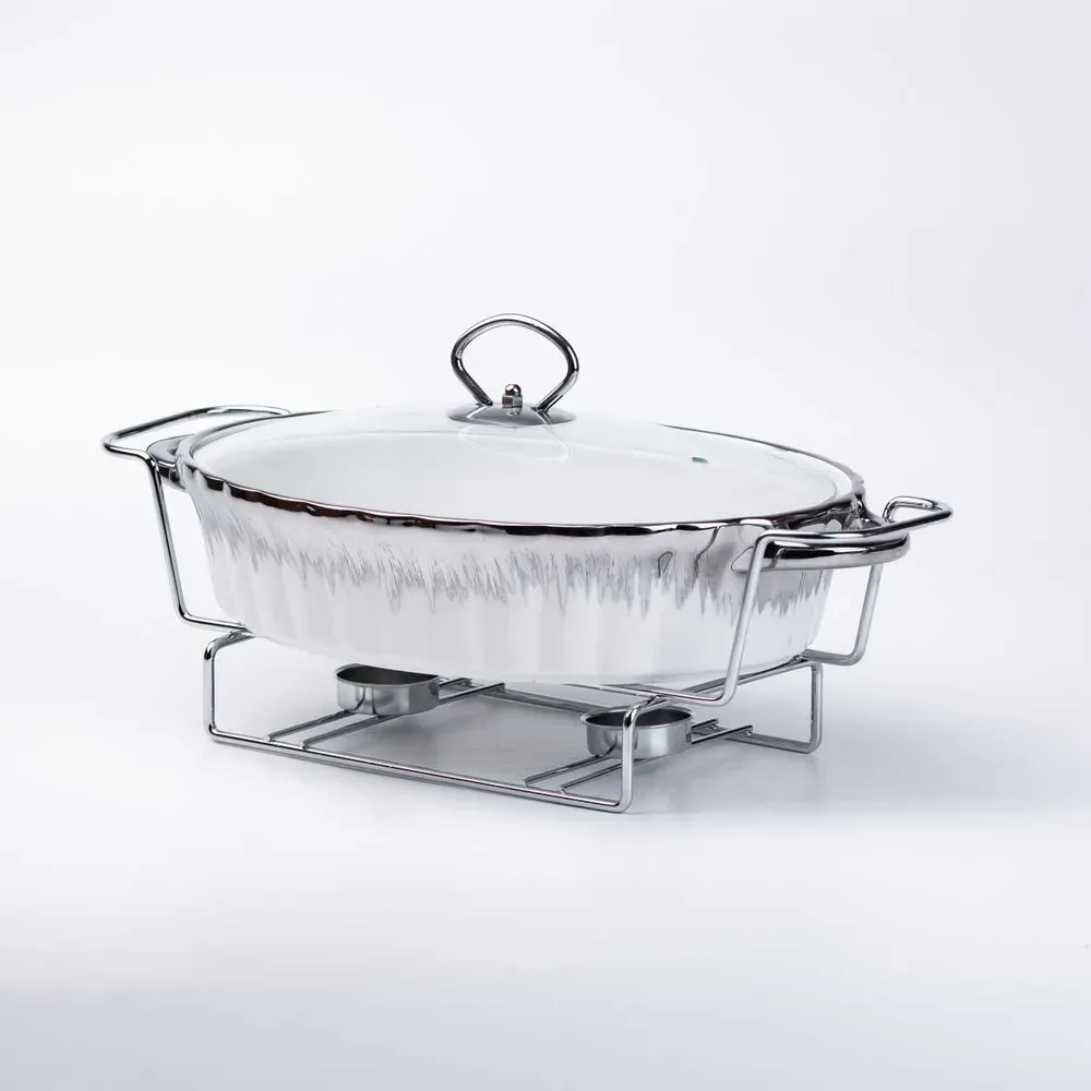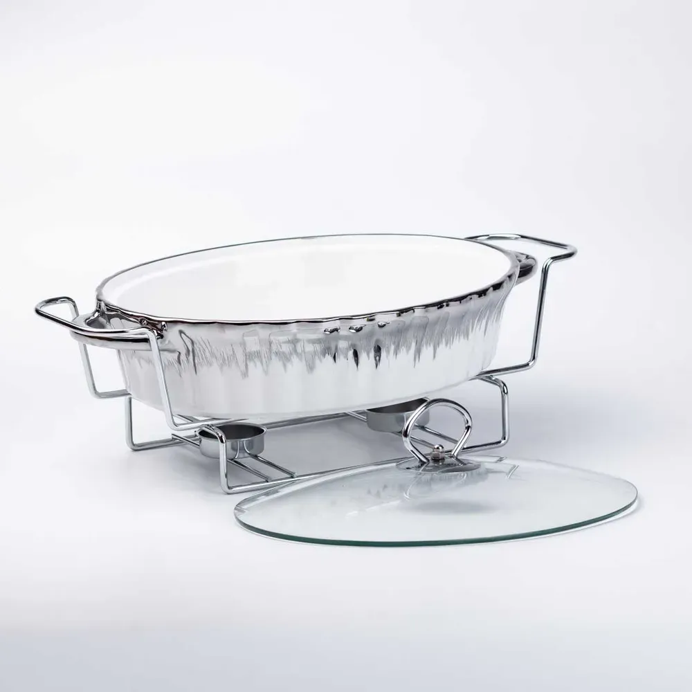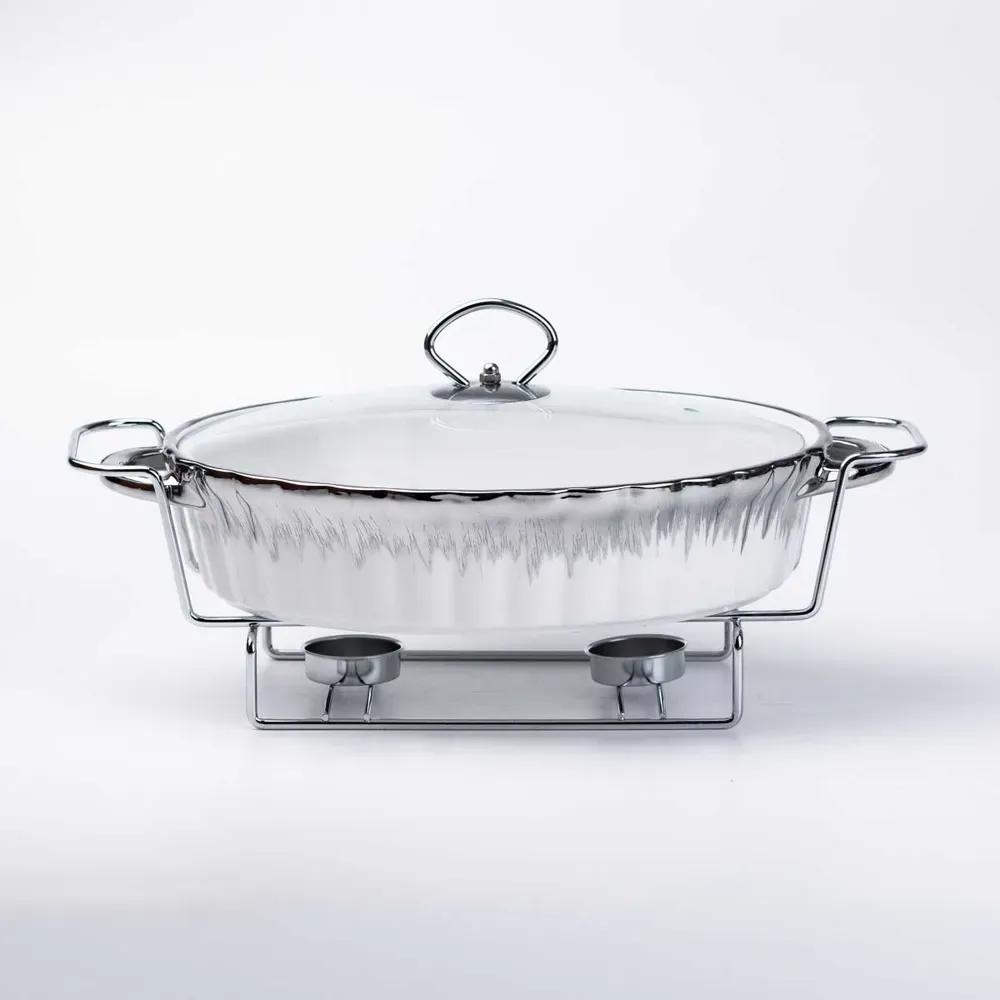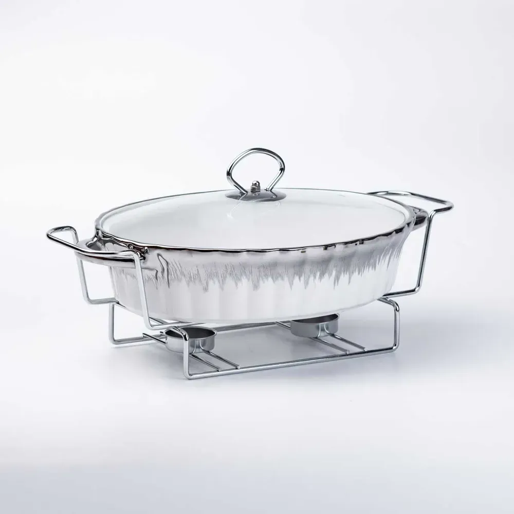 Марміт овальний керамічний 1,5 літра на металевій підставці з підігрівом (HP1023)