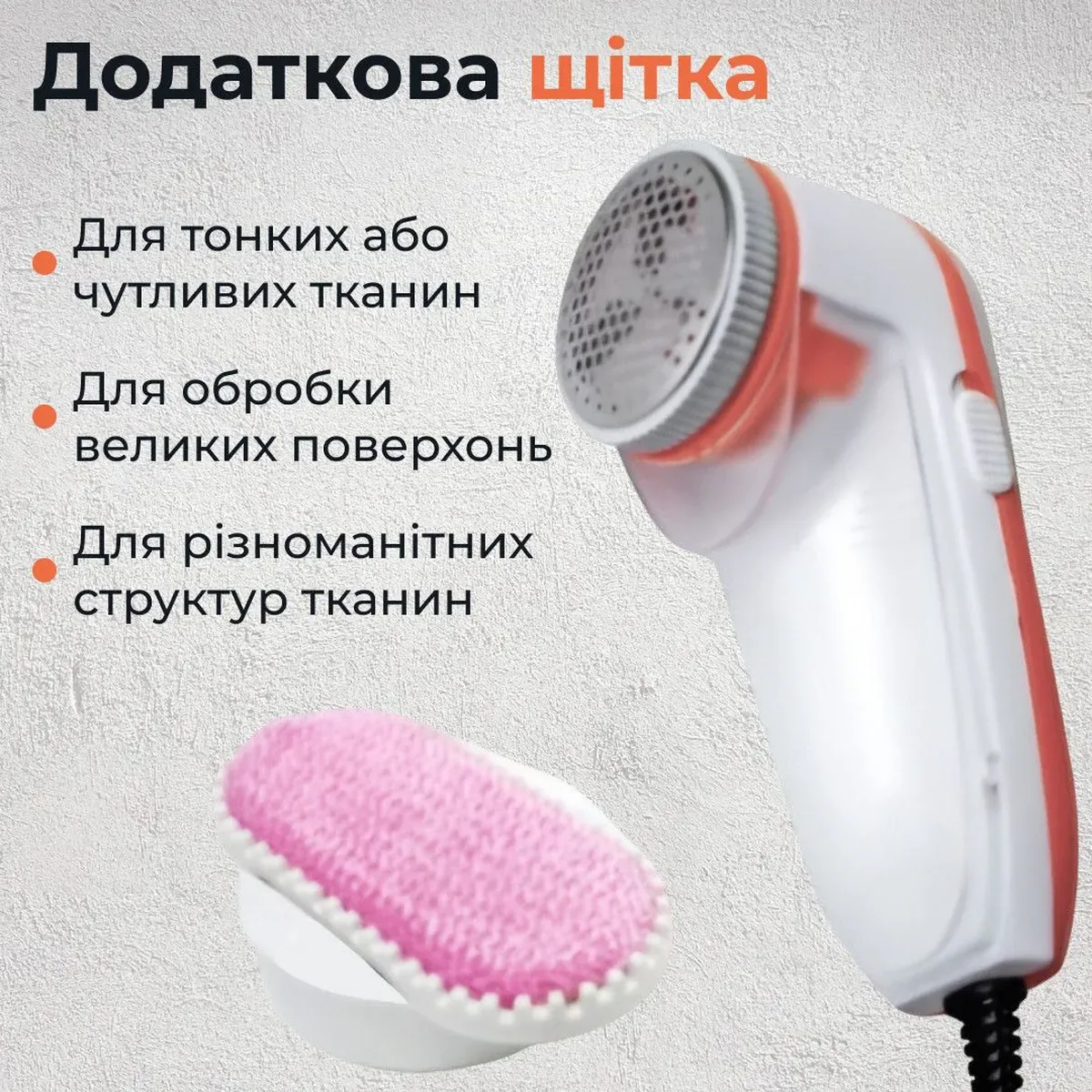Катишки потрапляють у дрібні отвори, легко і ніжно зрізаються, не псуючи цілісність тканини. Ви з легкістю обробите такі тканини як бавовна, синтетика, шерсть, акрил та багато інших. Для тонких тканин передбачено м'яку насадку.
