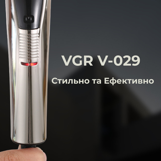 VGR V-029 підійде для використання у професійних перукарнях, так і вдома. Має дві дуже потужні літій-іонні батареї та два способи заряджання. Червоний світловий індикатор вказує на те, що пристрій працює. Також є індикатор зарядки. Машинка має надійні, стійкі до корозії леза з нержавіючої сталі. Корпус виглядає оригінально, стильно та зручно розміщується в руці. Машинка VGR V-029 - відмінний спосіб швидко та зручно стригти волосся будинку, навіть крутіше ніж у перукаря.