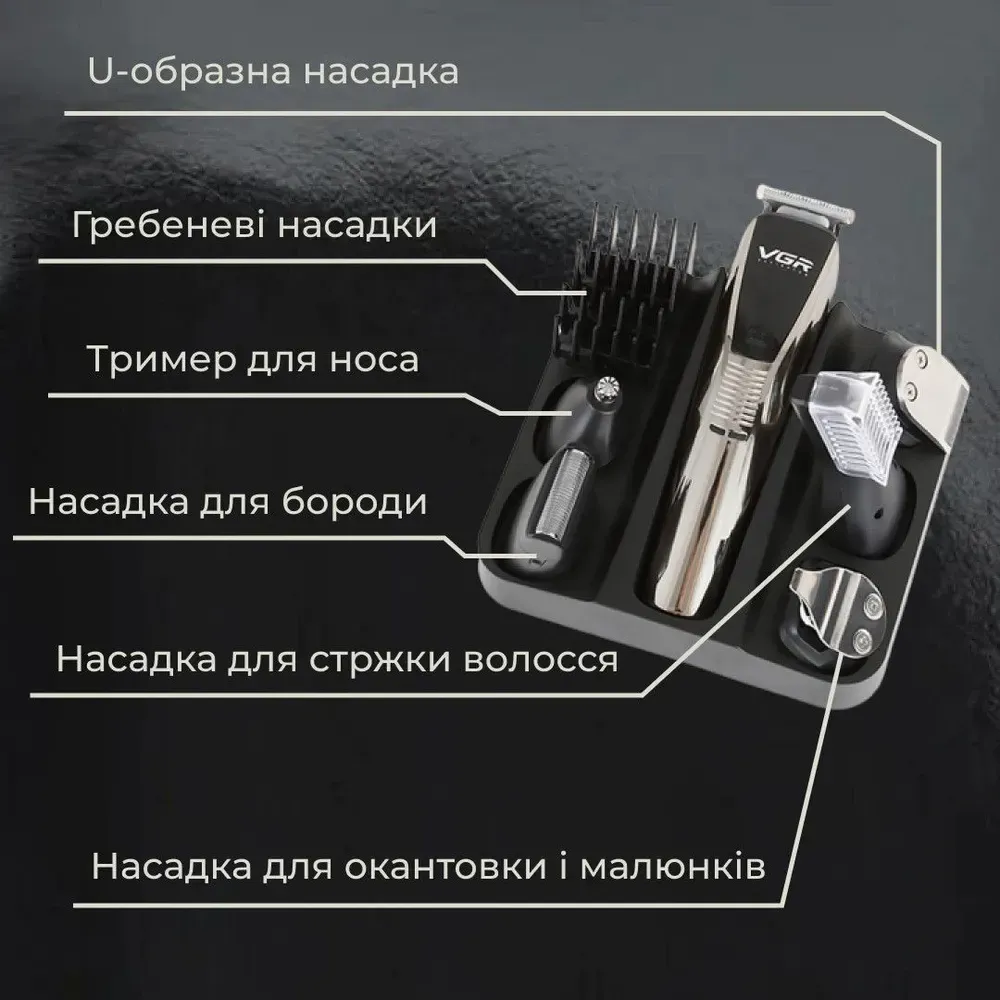 Машинка для стрижки професійна 6 в 1 тример акумуляторний набір для стрижки з насадками VGR V-029 (V029SL)