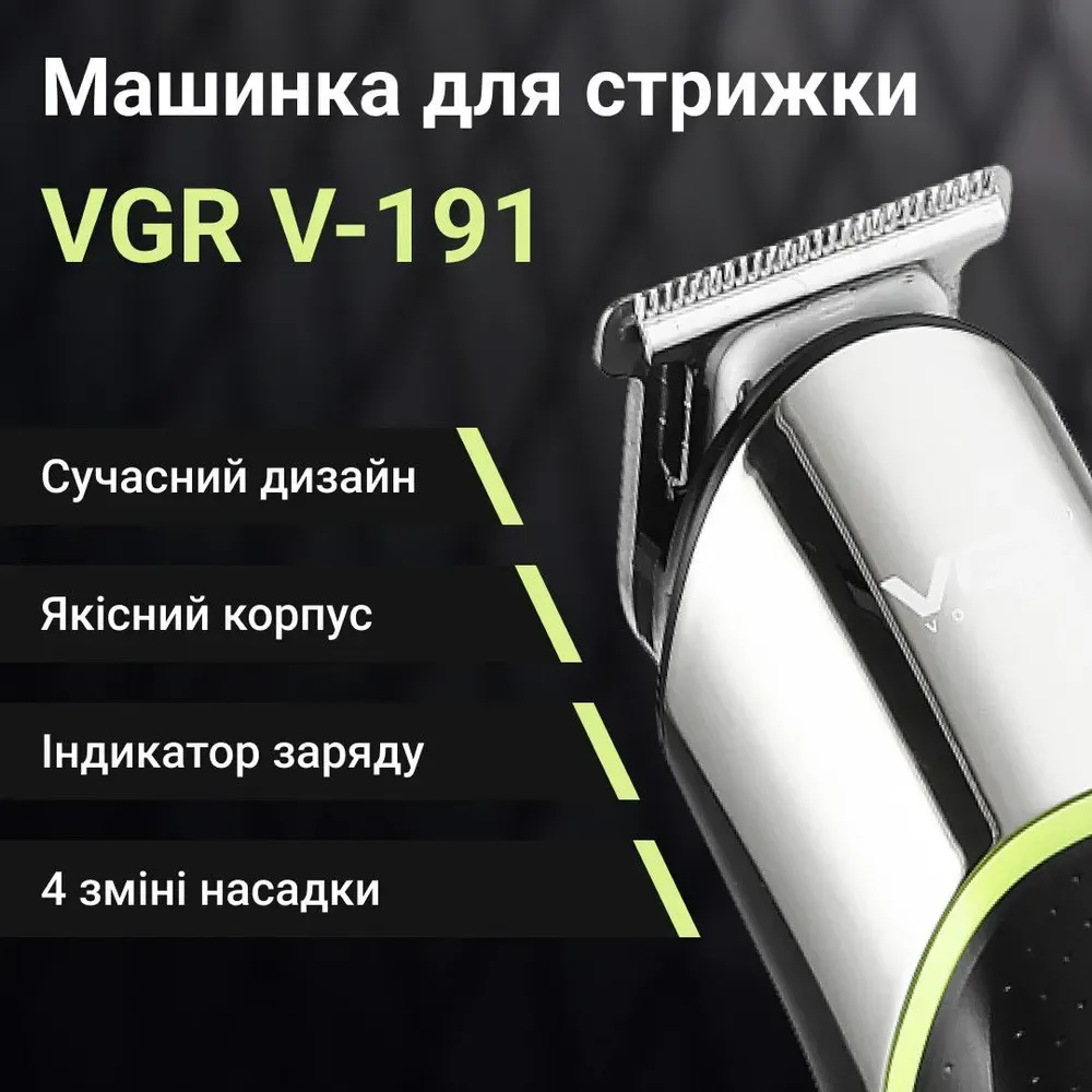 Багатофункціональна машинка для стрижки VGR V-191 призначена для домашніх умов, а також для професійного використання в перукарнях, салонах краси, барбершопах.