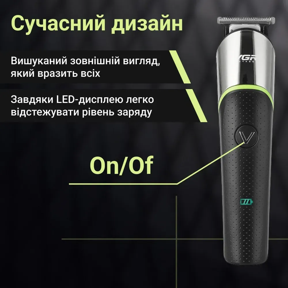 Машинка для стрижки волосся акумуляторна з насадками 5 Вт, тример професійний для бороди VGR V-191 (V191B)