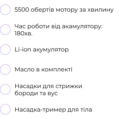 Машинка підійде для використання як в професійних перукарнях, так і вдома. Має достатньо місткий акумулятор для тривалого використання. Має надійні, стійкі до корозії леза з нержавіючої сталі. Корпус виглядає оригінально, стильно та зручно розміщується в руці. Машинка VGR - відмінний спосіб швидко і зручно стригти волосся вдома, навіть крутіше, ніж у перукаря.