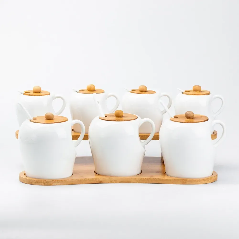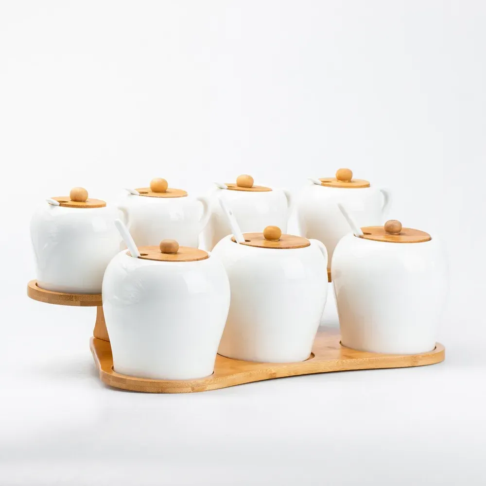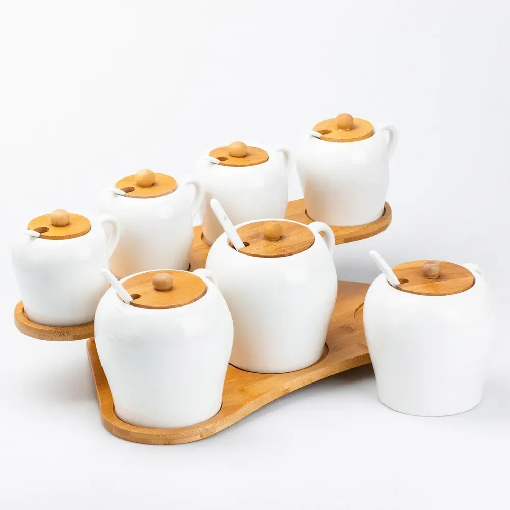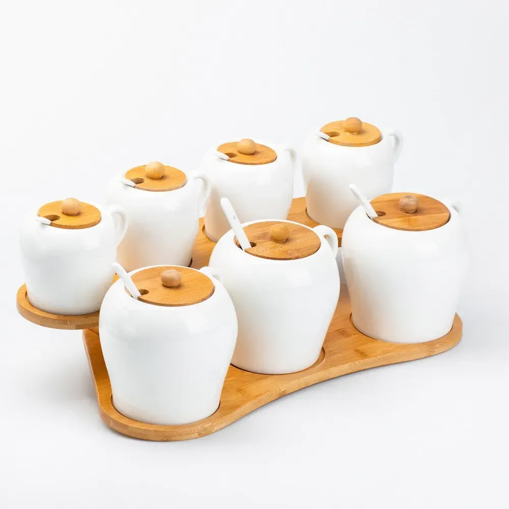 Набір складається із семи банок для спецій. Вироби виготовлені з високоякісної кераміки привабливої форми. Екологічно чистий матеріал, який не шкодить вашому здоров'ю. Крім того, цей матеріал захищає продукти та їжу від утворення шкідливих бактерій, які можуть зіпсувати аромат та смак їжі.