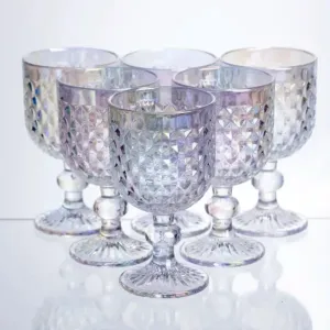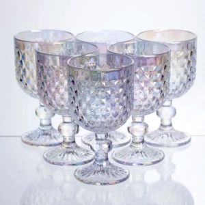 Набір келихів для вина з рельєфною поверхнею — це базове рішення для подачі червоних або білих вин. Комплект із 6 скляних келихів підійде для домашнього вжитку, сервірування столу під час подій або використання в кавʼярнях та ресторанах. Класична форма чаші на ніжці забезпечує зручність та естетичну простоту. Кожен келих має висоту 14 см, верхній діаметр 7.5 см і нижній — 6 см. Обʼєм — 220 мл, що відповідає середньому розміру для порційного подавання вина. Завдяки рельєфній поверхні келих приємно тримати в руці, а товщина скла дозволяє зберігати стабільність температури напою. Загальна вага набору становить 2 кг. Форма виробу — традиційна чаша на ніжці — дозволяє розкрити аромат напою та підтримувати належний температурний режим. Келихи легко поєднуються з іншим посудом завдяки стриманому дизайну без зайвого декору. Характеристики: Матеріал: Скло Висота: 14 см Діаметр верхній: 7.5 см Діаметр нижній: 6 см Обʼєм одного келиха: 220 мл Загальна вага набору: 2 кг