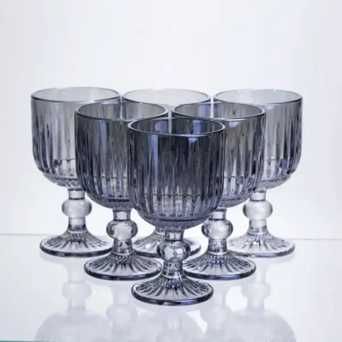 Набір келихів для вина 6 штук по 220 мл ребристих з товстого скла синій HP-19-238 (HP-19-238)
