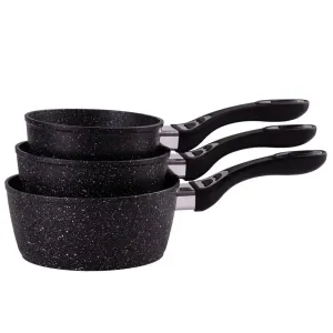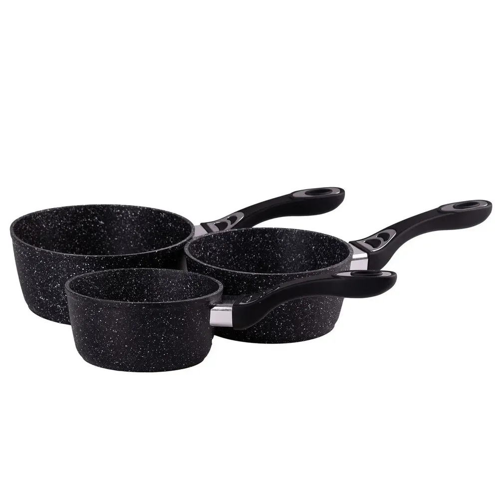 Набір ковшів включає в себе 3 предмети, виконаних в чорному кольорі. Цей набір ковшів надає зручні та стильні інструменти для різних кулінарних завдань у вашій кухні. Чорний дизайн додає елегантності та сучасності вашому кухонному інтер'єру.