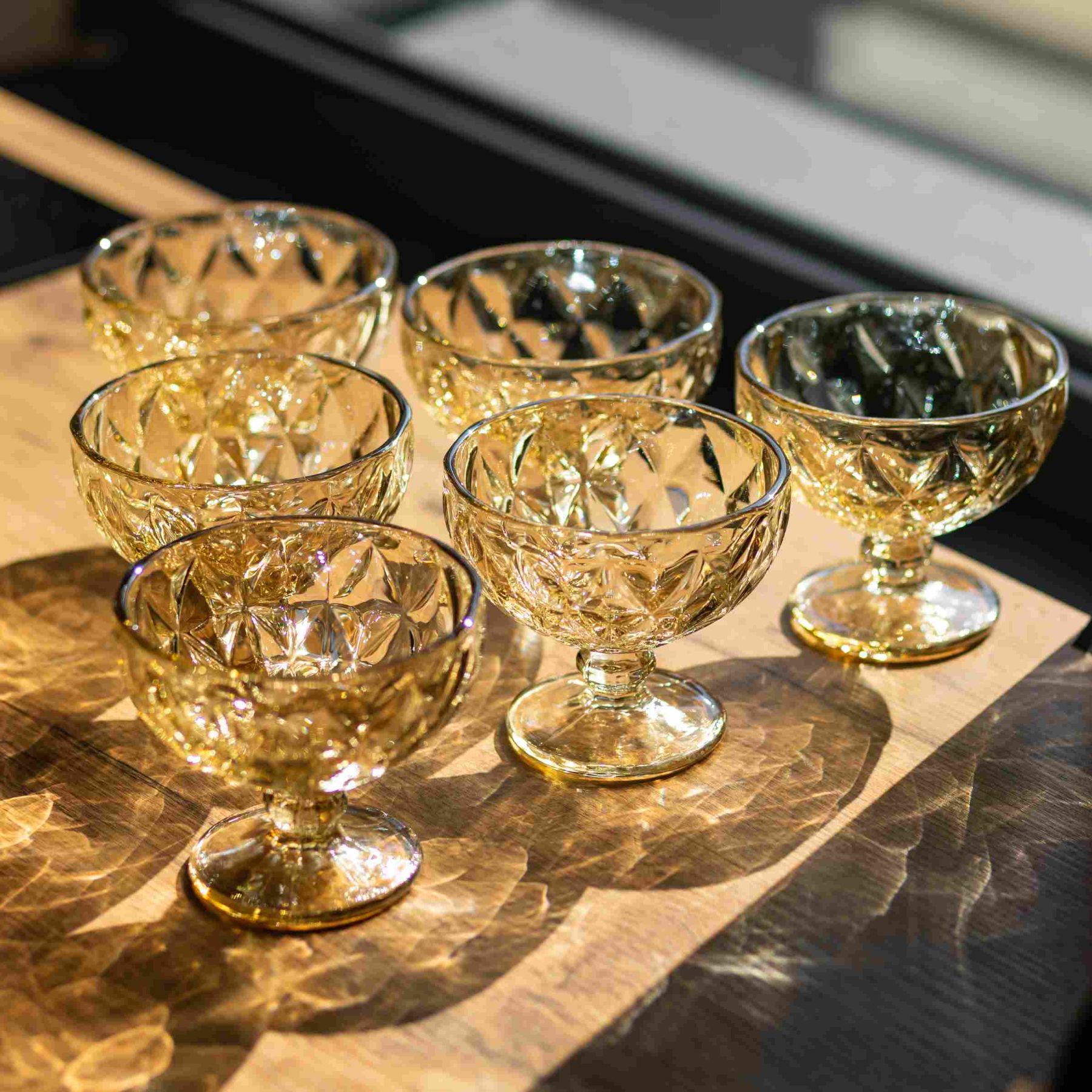 Елегантні креманки із тонованого скла у теплому бурштиновому відтінку. Ідеально підходять для порційної подачі десертів, морозива чи фруктових салатів, створюючи атмосферу затишку при будь-якому сервіруванні. Особливості: Бурштиновий відтінок: Насичений медово-золотистий колір скла надає десертам апетитного вигляду та гарно підсвічується при денному або вечірньому освітленні. Декоративне огранювання: Виразний візерунок по всій чаші не тільки тішить око, але й забезпечує надійне захоплення, коли креманка в руці. Практична форма: Оптимальний об'єм 300 мл дозволяє зручно сервірувати різні страви, а стійка ніжка гарантує стабільність. Характеристики: Матеріал: скло Об'єм: 300 мл Розміри (діаметр/висота): 11,8/13 см Вага: 2 кг