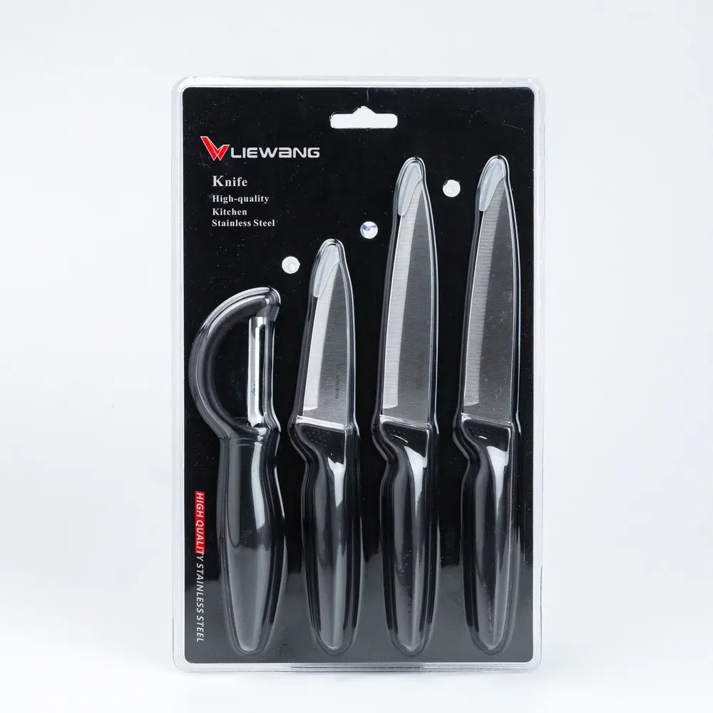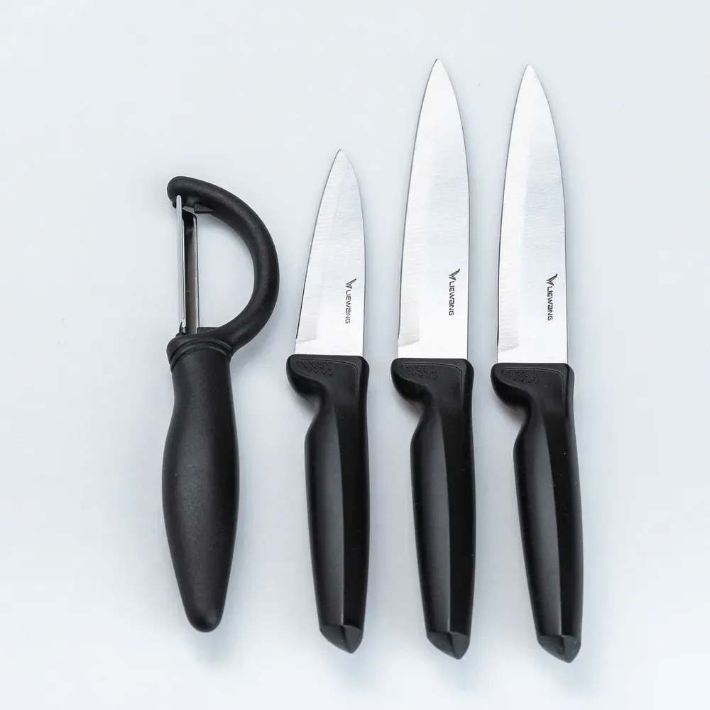 Набір кухонних ножів 3 штук + овочечистка Чорний (HP27480B)
