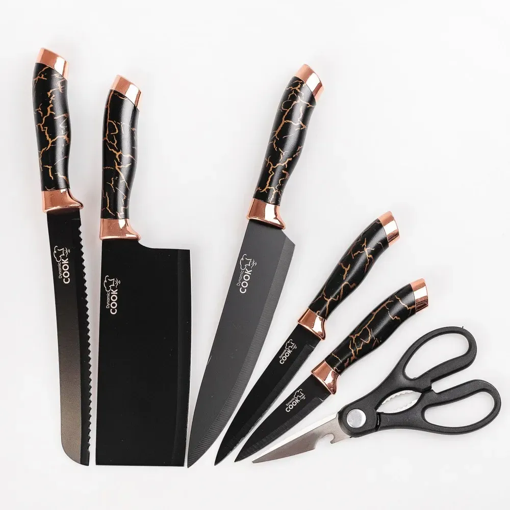 Набір кухонних ножів з нержавіючої сталі 6 предметів з ножицями (YRUR12)