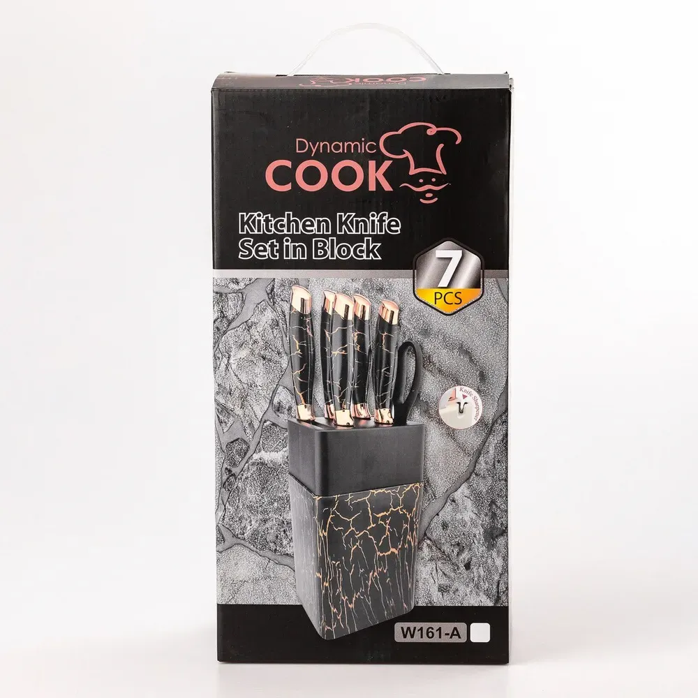 Підставка набору обладнана вбудованою точилкою, що забезпечує легкість підтримки гостроти ножів. Цей компактний і стильний набір надає всі необхідні інструменти для ефективної роботи на кухні.