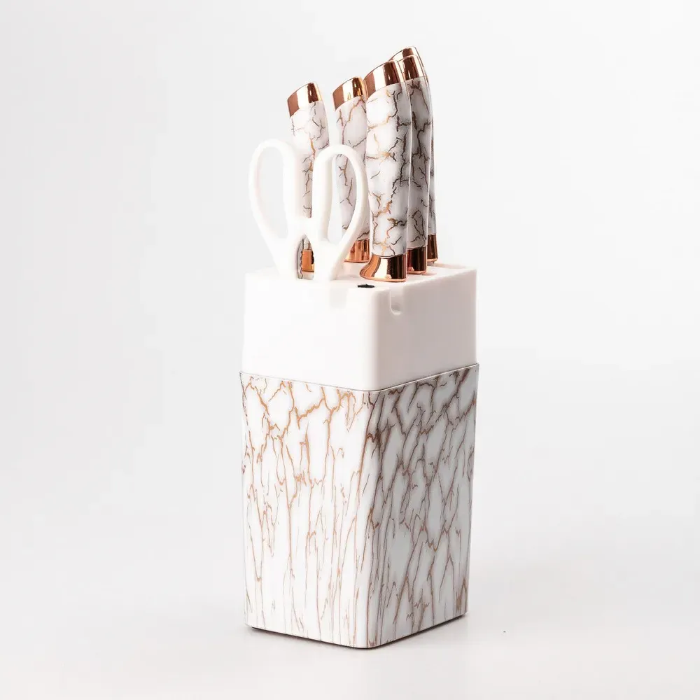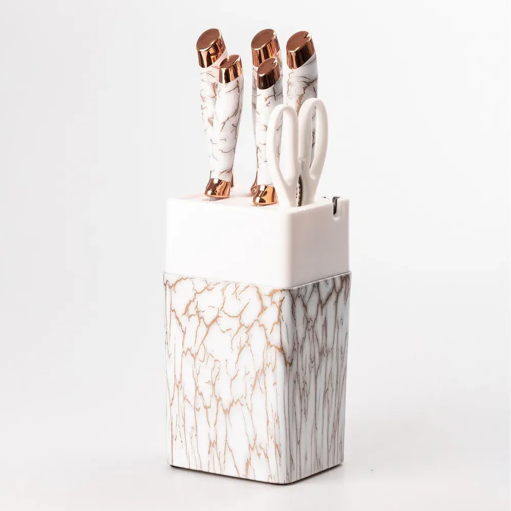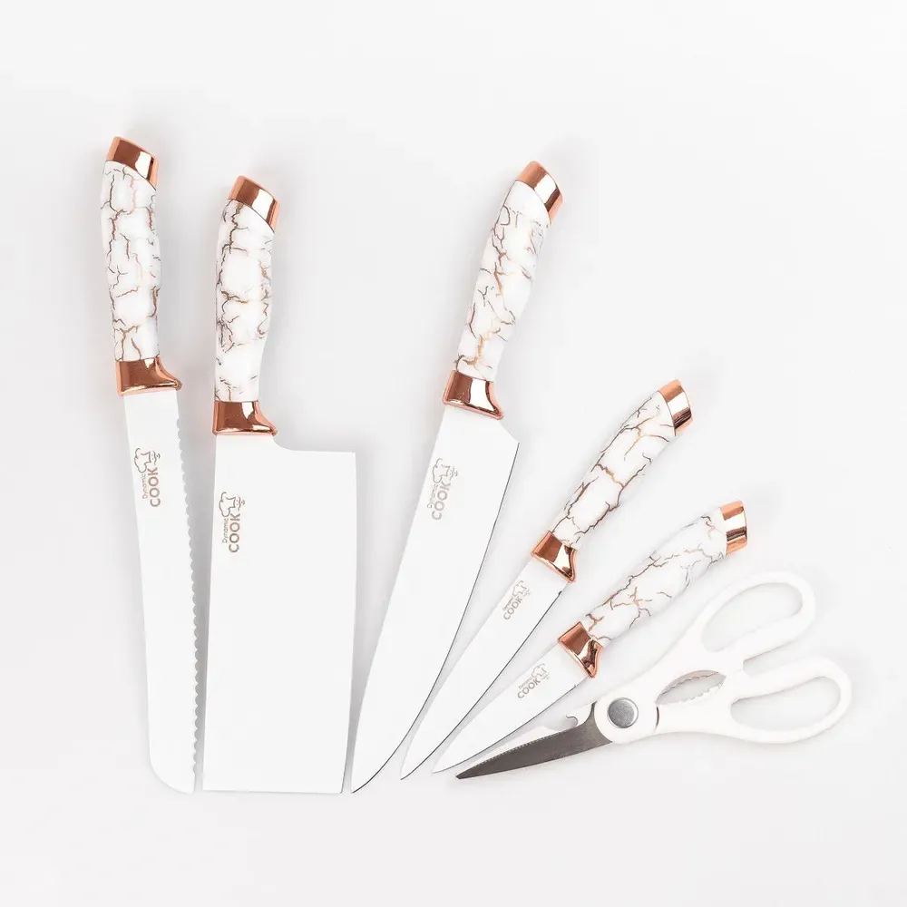Набір кухонних ножів з нержавіючої сталі 6 предметів з ножицями Білий (YRUR14)