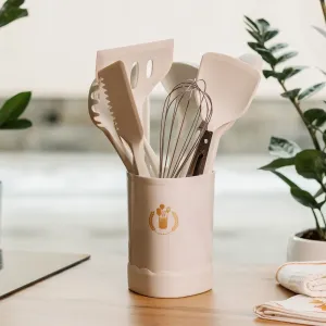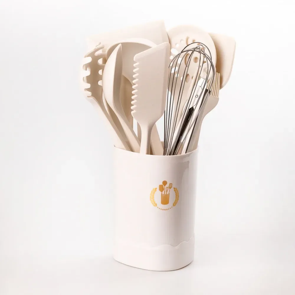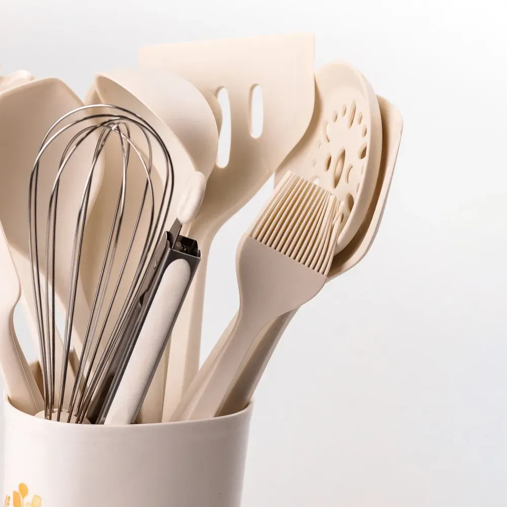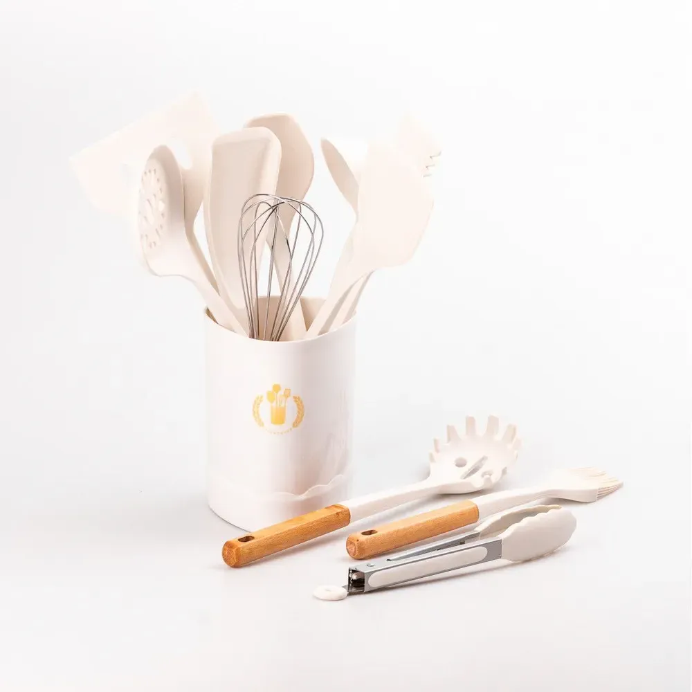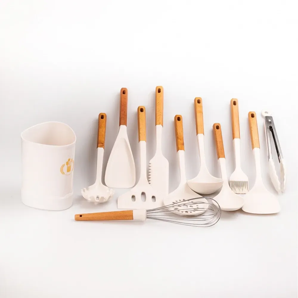 Набір кухонного приладдя на підставці 12 штук кухонні аксесуари силіконові з дерев'яною ручкою (YRUR9)