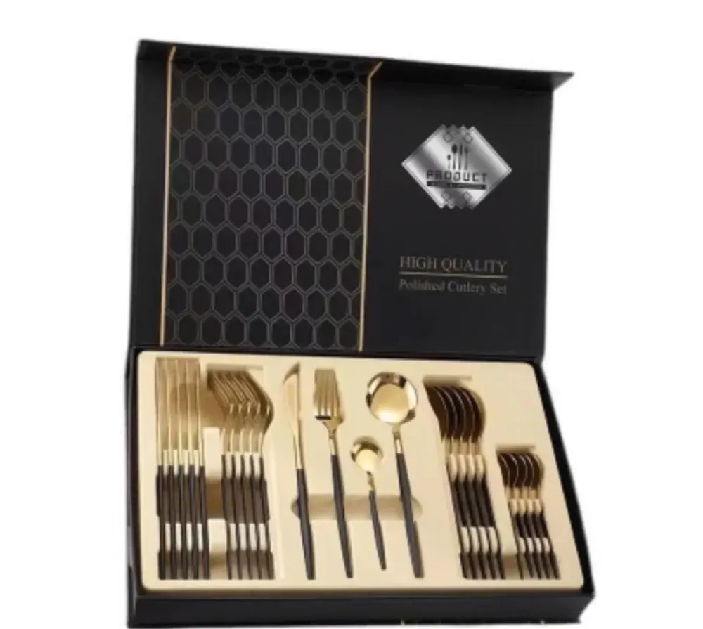 Набір столових приборів із нержавіючої сталі на 6 персон 24 штуки Чорний (HP96918)