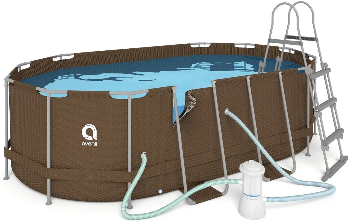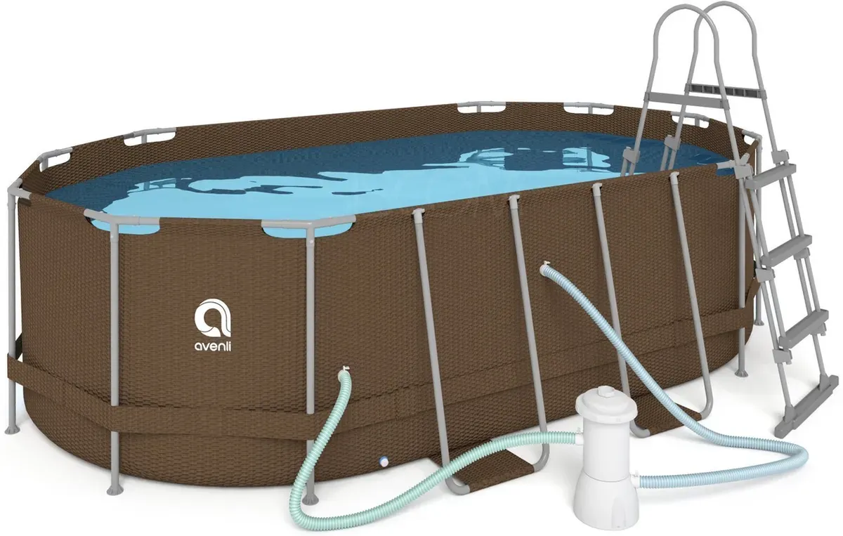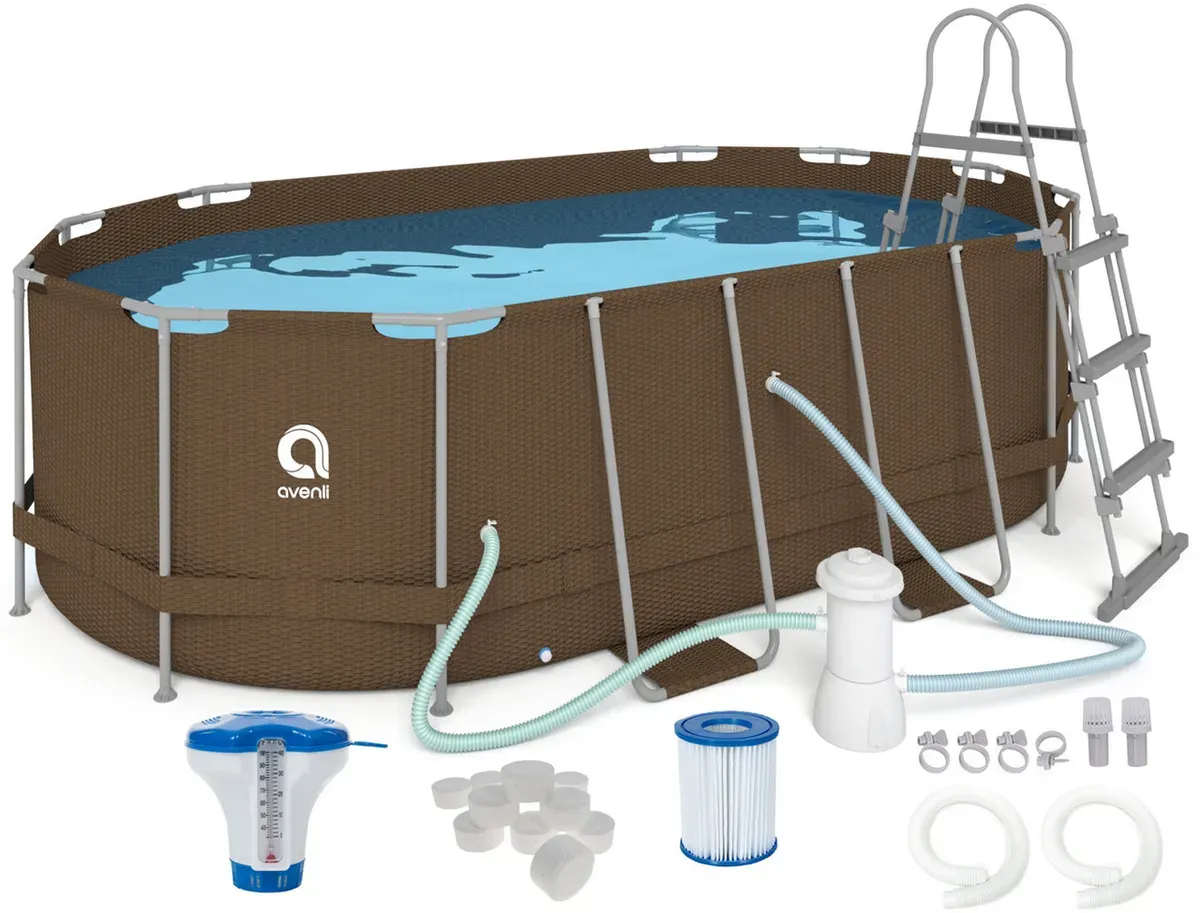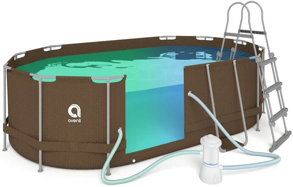 Овальний садовий каркасний басейн Avenli (427 × 275 × 100 см), комплектація 16в1, Коричневий (B0027)