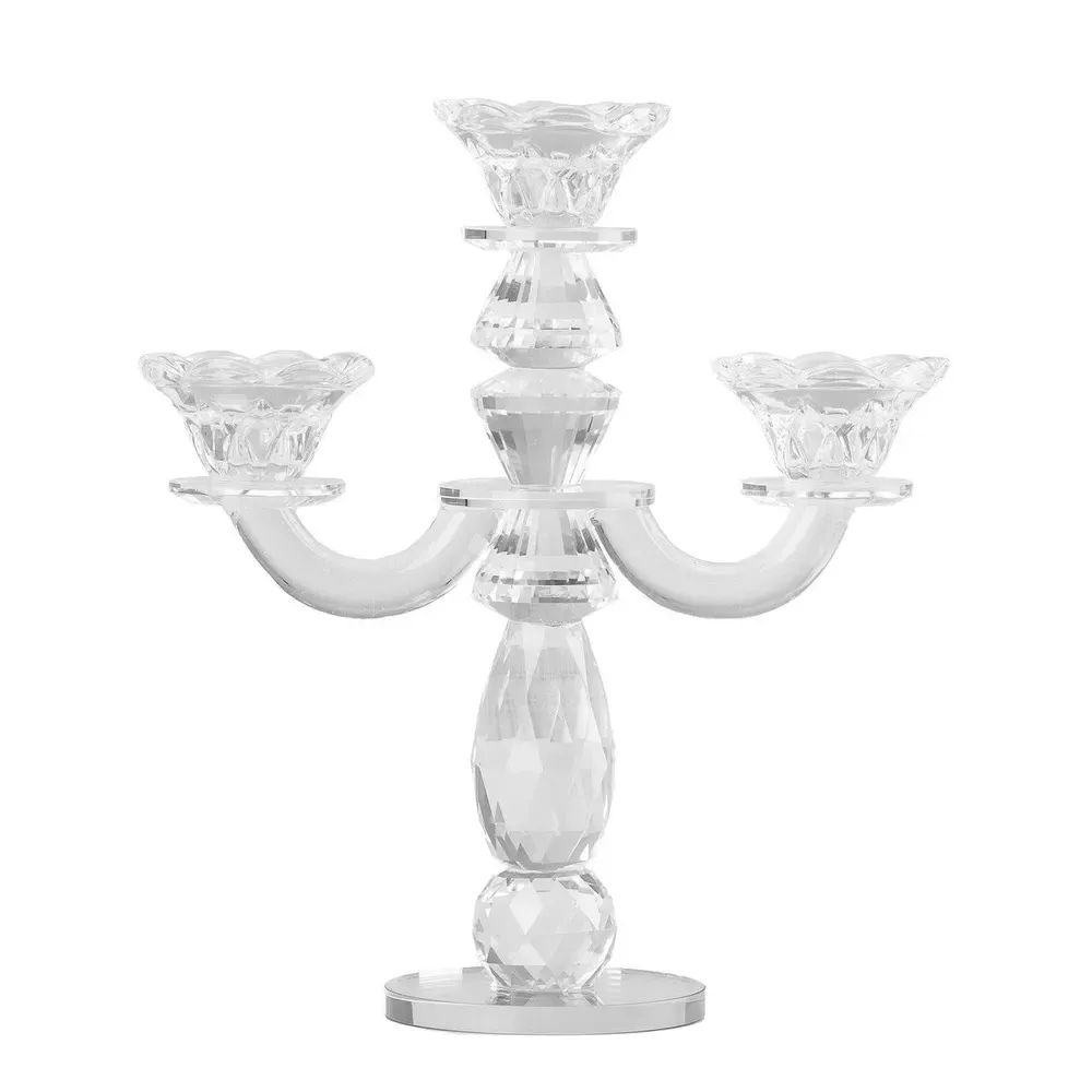 Скляний підсвічник на три свічки - ідеальний варіант для святкового сервірування, створення романтичної атмосфери та просто як витончений і стильний елемент інтер'єру. Він може стати гідною прикрасою камінної полиці та обіднього столу, а світло від запалених свічок буде переломлюватися та сяяти у кожній грані, створюючи неповторну атмосферу у будь-якому приміщенні.