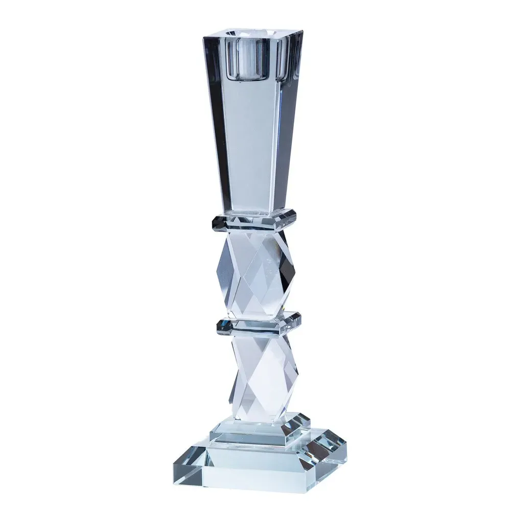 Оригінальний скляний свічник додасть нотку елегантності та вишуканості будь-якому інтер'єру. Нестандартна форма, стильний дизайн, якісні матеріали дозволяють використовувати його у сервіруванні святкового столу, як прикраса камінної полиці, або для створення романтичної атмосфери. Свічник виконаний таким чином, що світло свічки заломлюється в кожній грані, створюючи приголомшливі світлові ефекти. Свічник виготовлений з товстого скла, відрізняється міцністю та довговічністю при належному догляді. Для миття рекомендується використовувати неабразивні засоби та м'які губки, щоб уникнути пошкоджень.